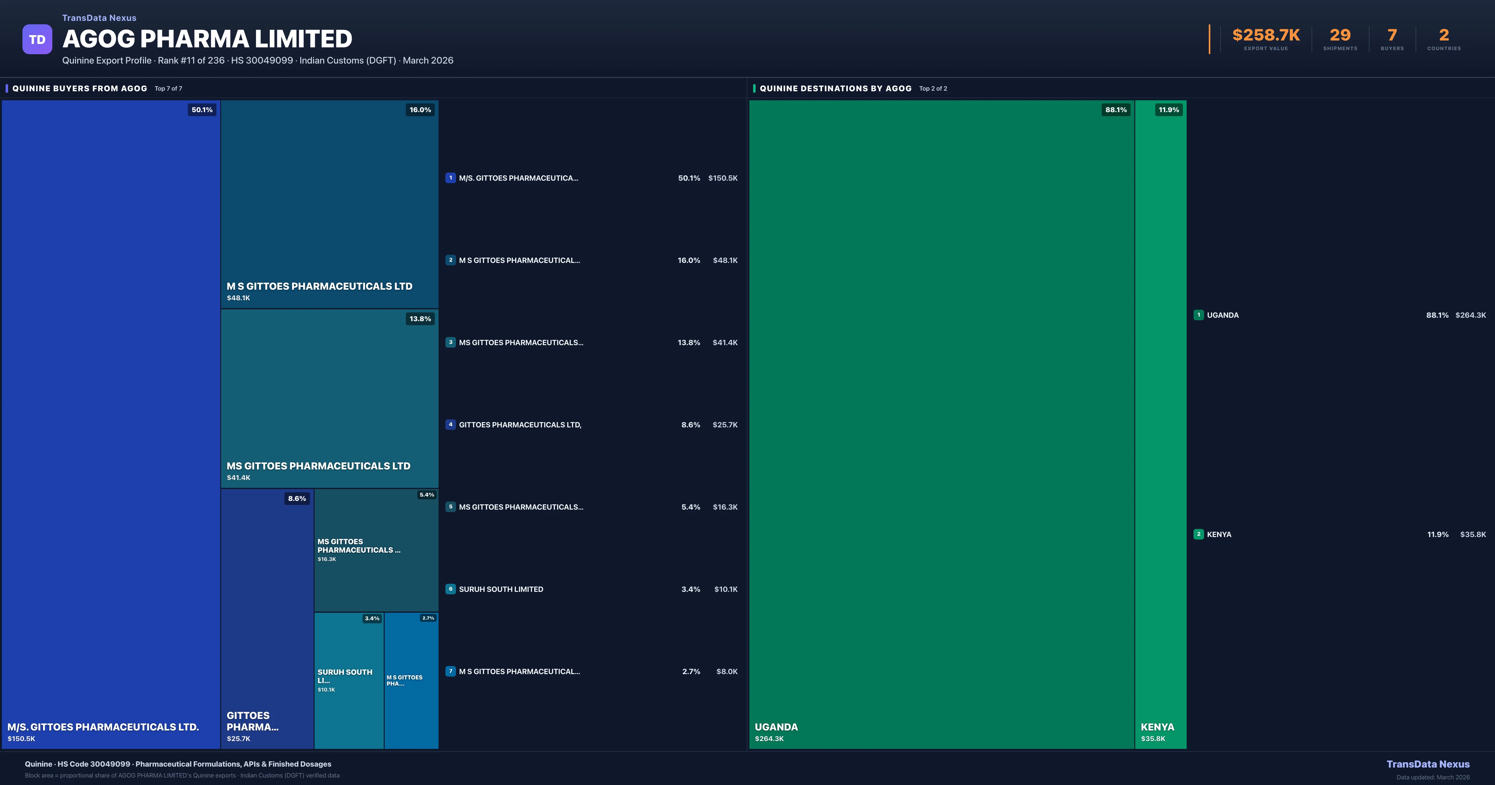 Agog Pharma Limited β Quinine Export Profile: Buyers & Destinations