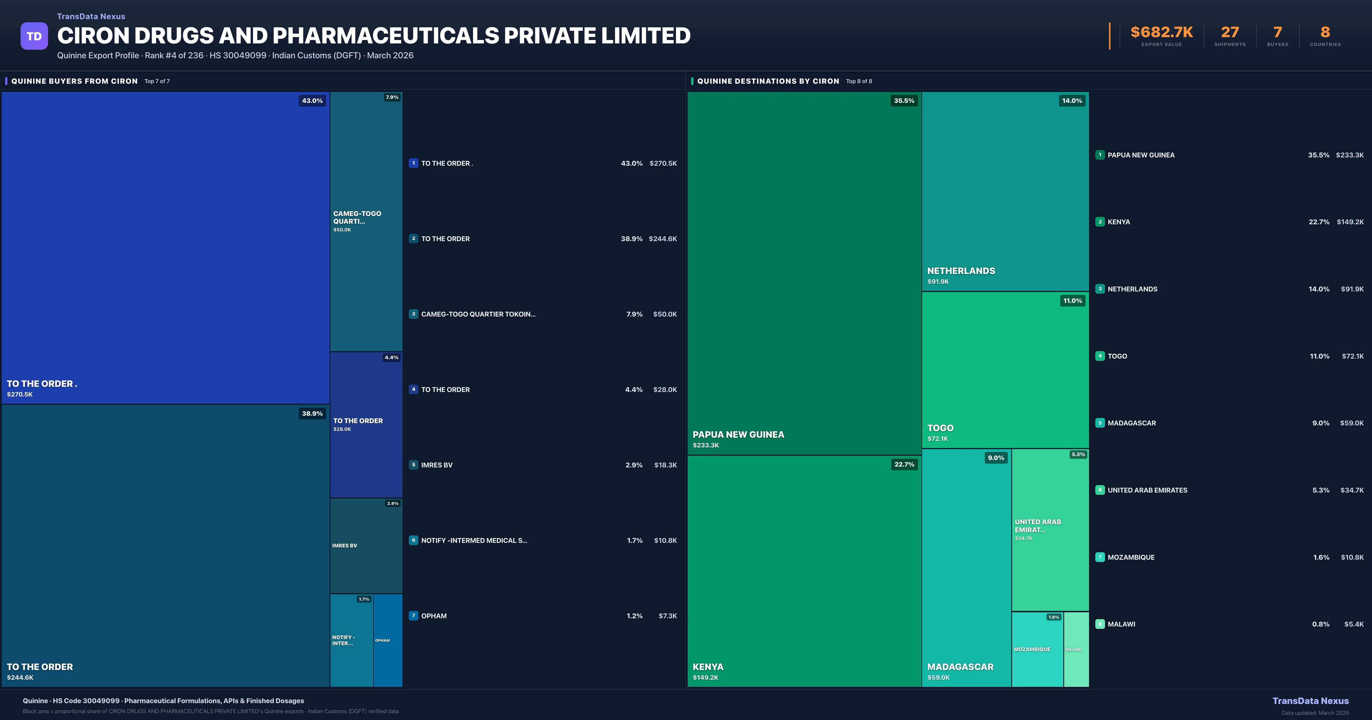 Ciron Drugs AND Pharmaceuticals Private Limited β Quinine Export Profile: Buyers & Destinations