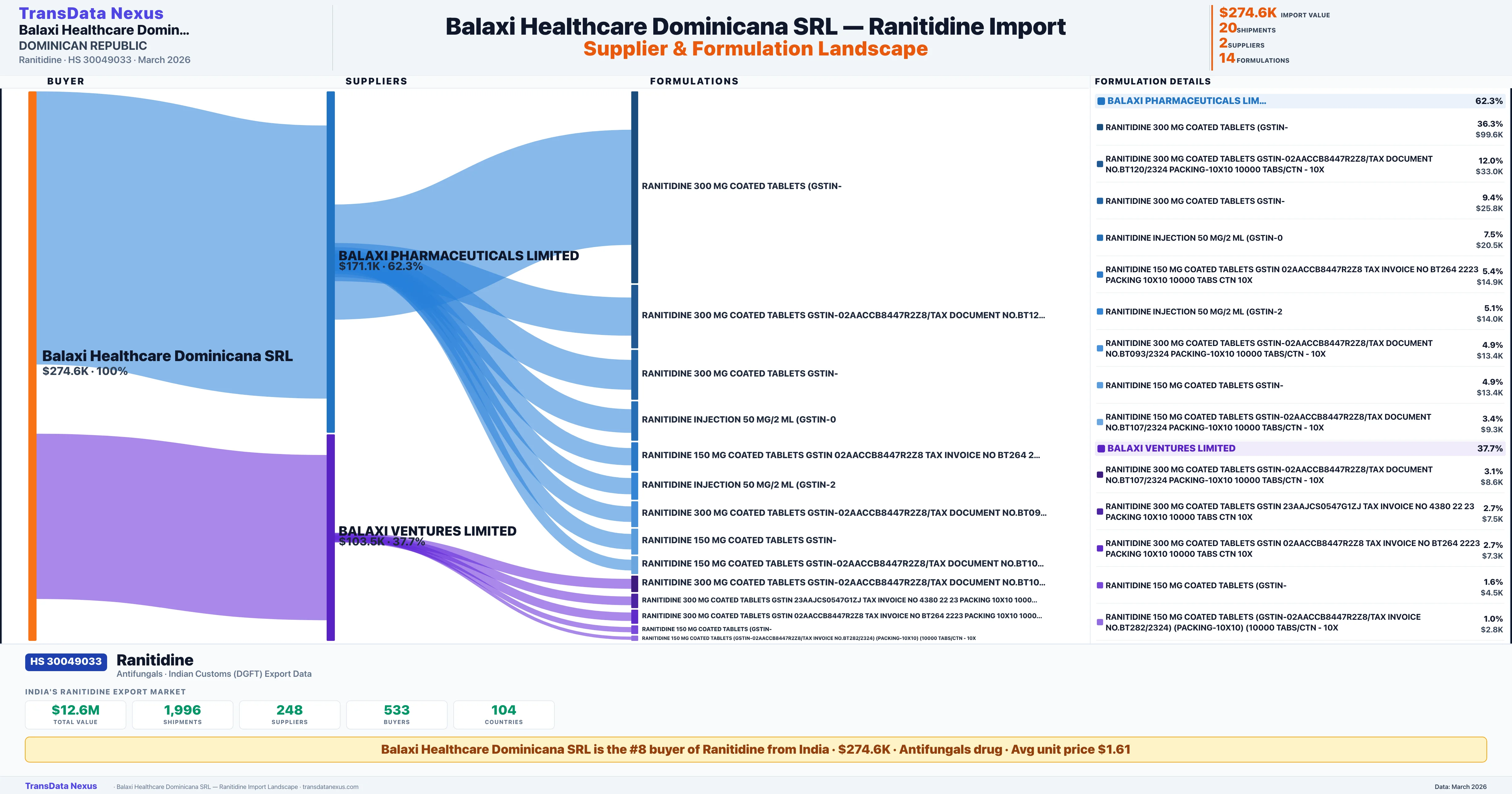 BALAXI HEALTHCARE DOMINICANA SRL β Ranitidine Import Profile: Suppliers, Formulations & Sources