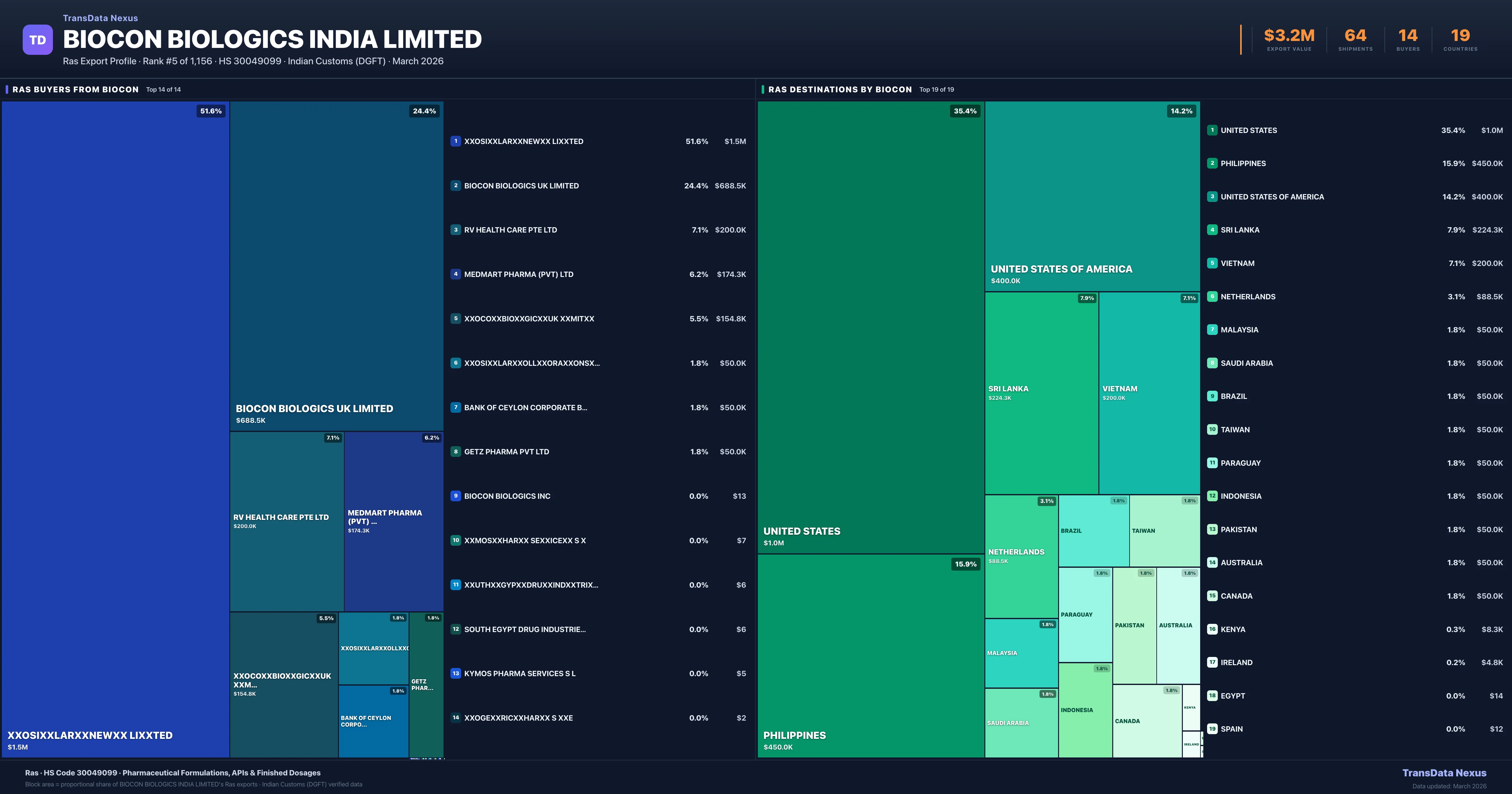 Biocon Biologics India Limited — Ras Export Profile: Buyers & Destinations