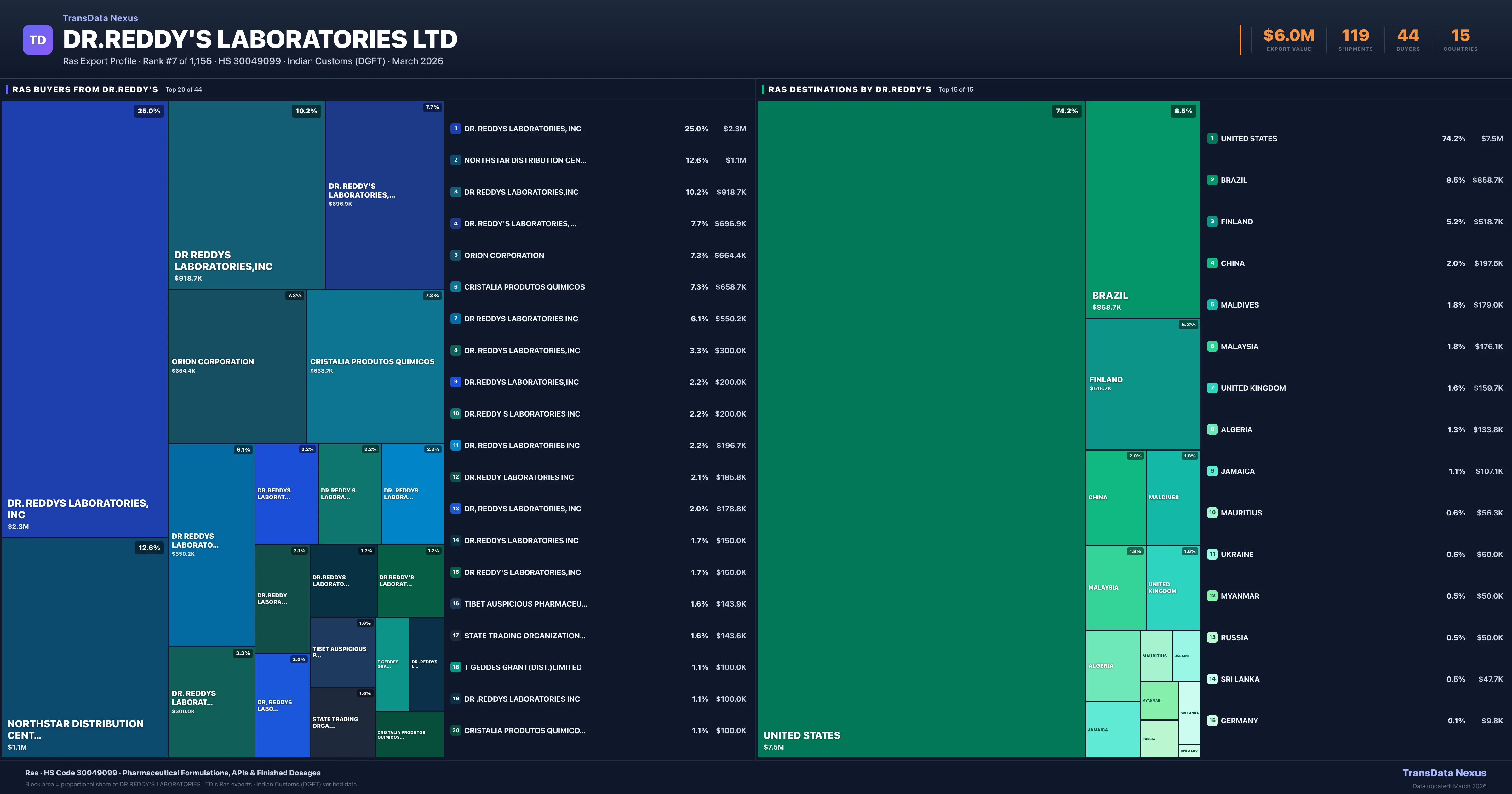 Dr.reddy's Laboratories Ltd — Ras Export Profile: Buyers & Destinations