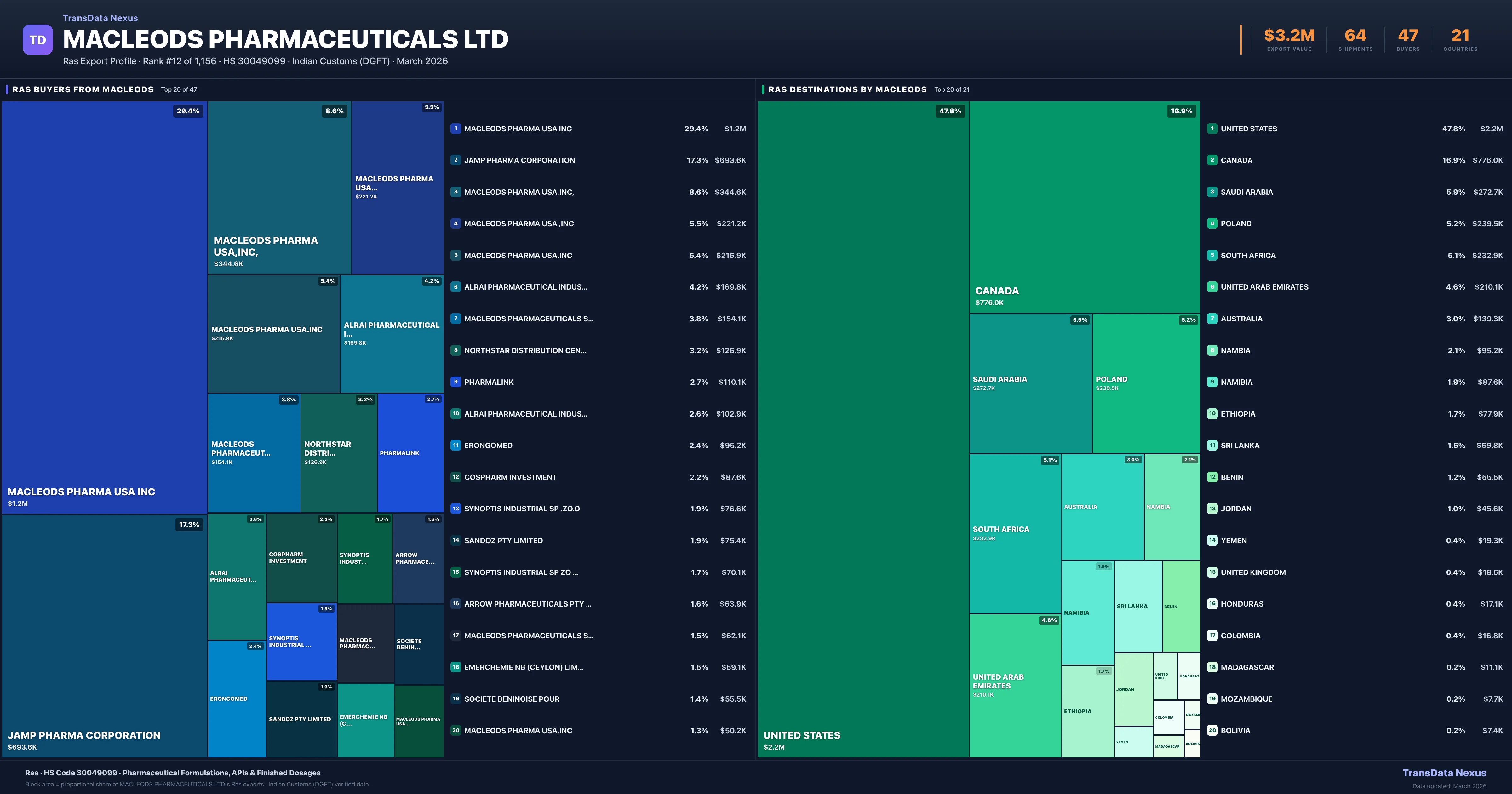 Macleods Pharmaceuticals Ltd — Ras Export Profile: Buyers & Destinations