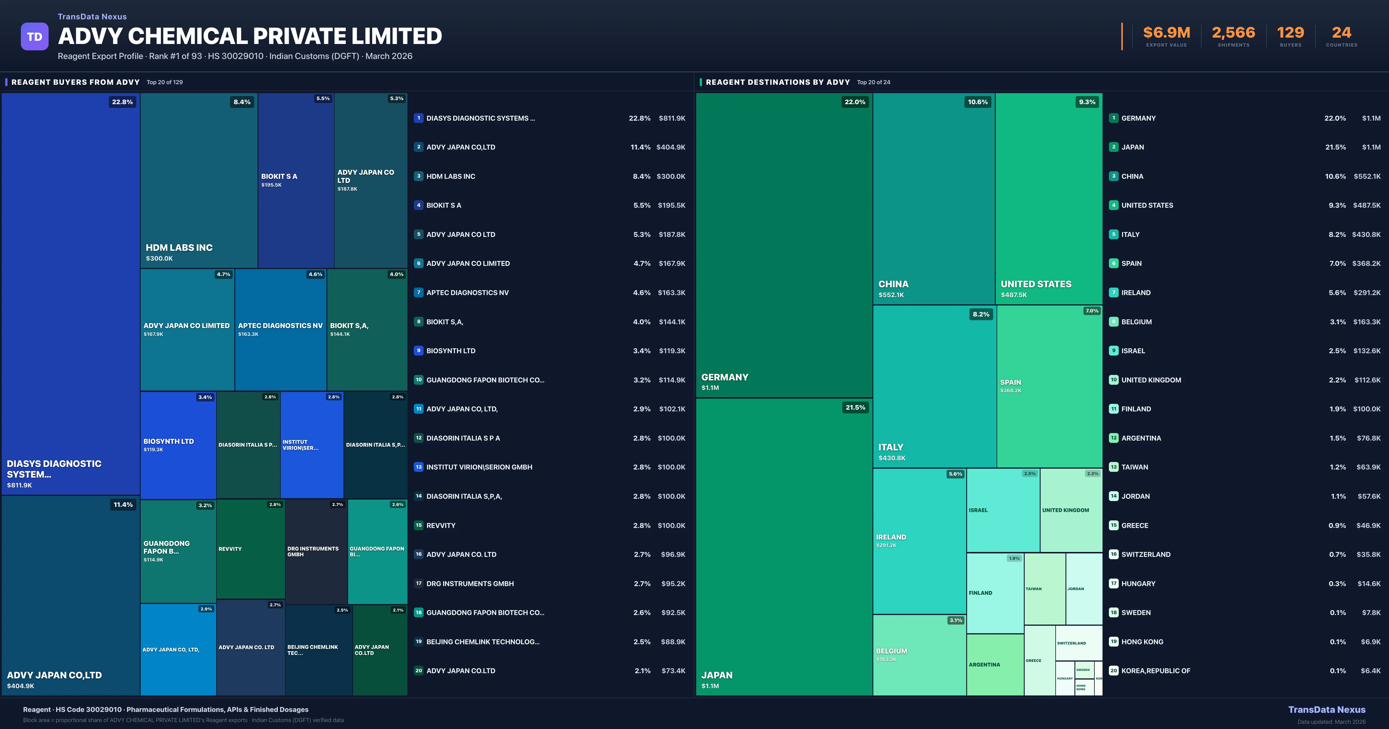 Advy Chemical Private Limited — Reagent Export Profile: Buyers & Destinations