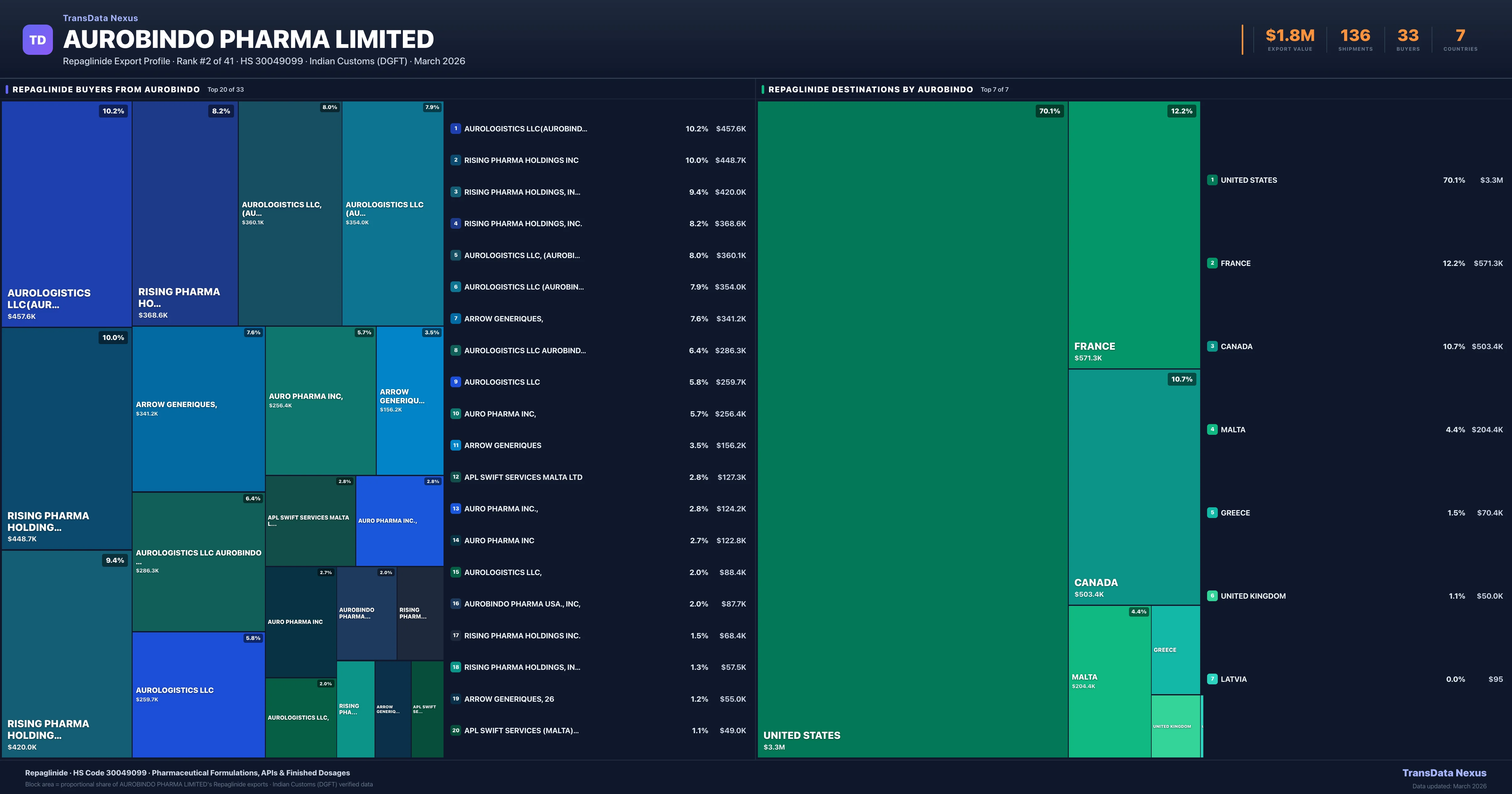 Aurobindo Pharma Limited — Repaglinide Export Profile: Buyers & Destinations