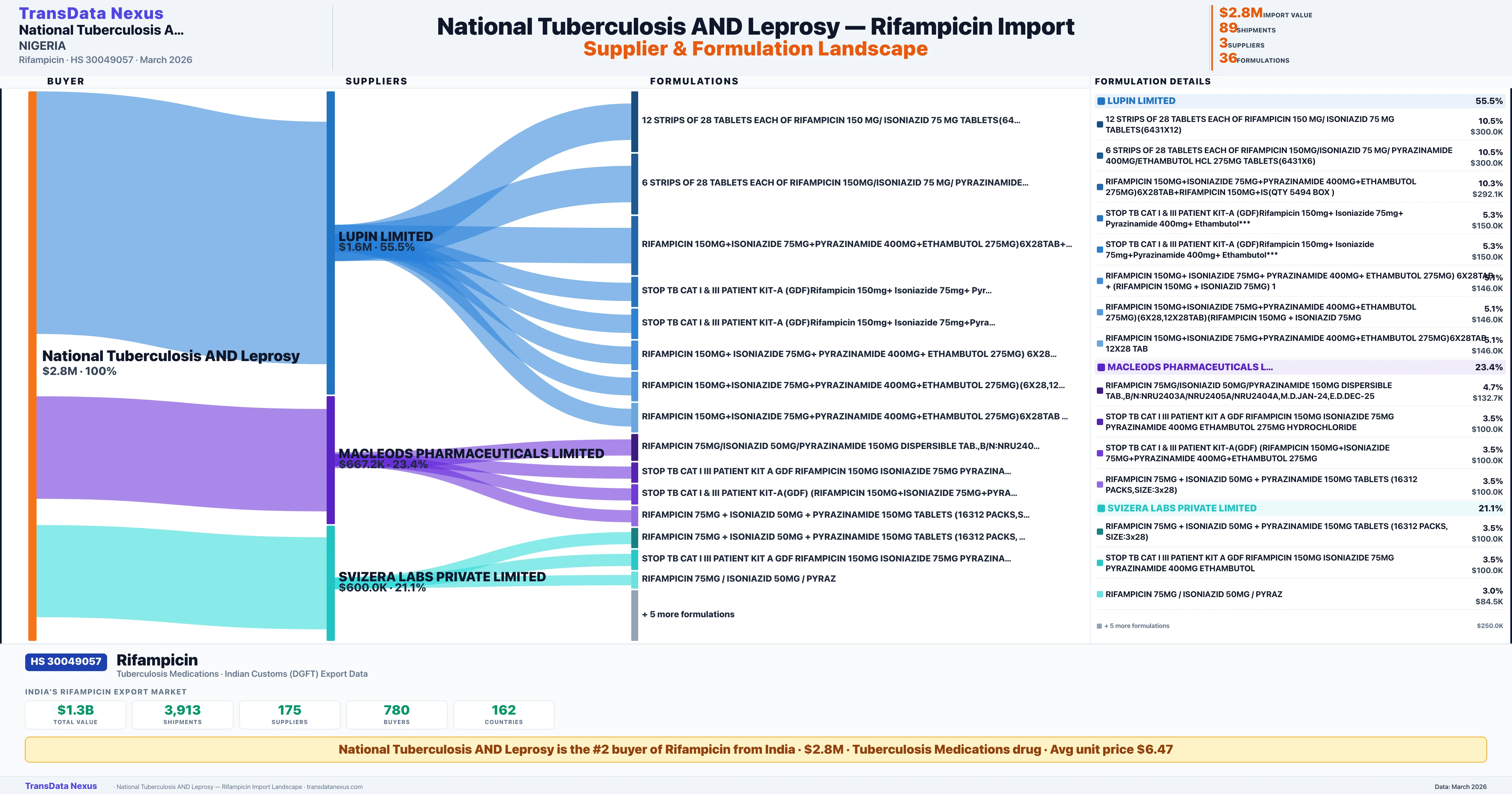 NATIONAL TUBERCULOSIS AND LEPROSY sources Rifampicin from based on 89 customs records.