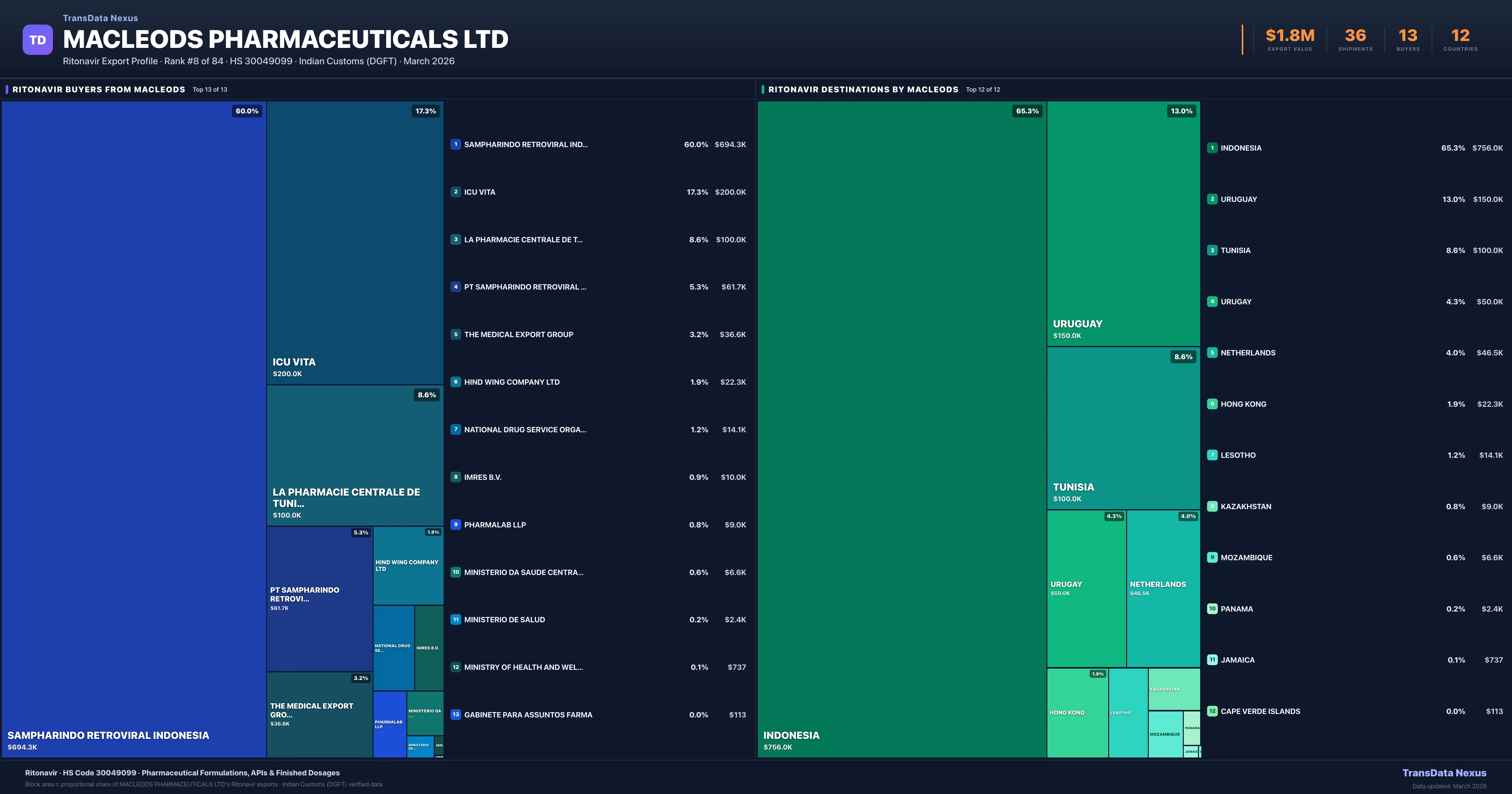 Macleods Pharmaceuticals Ltd β Ritonavir Export Profile: Buyers & Destinations