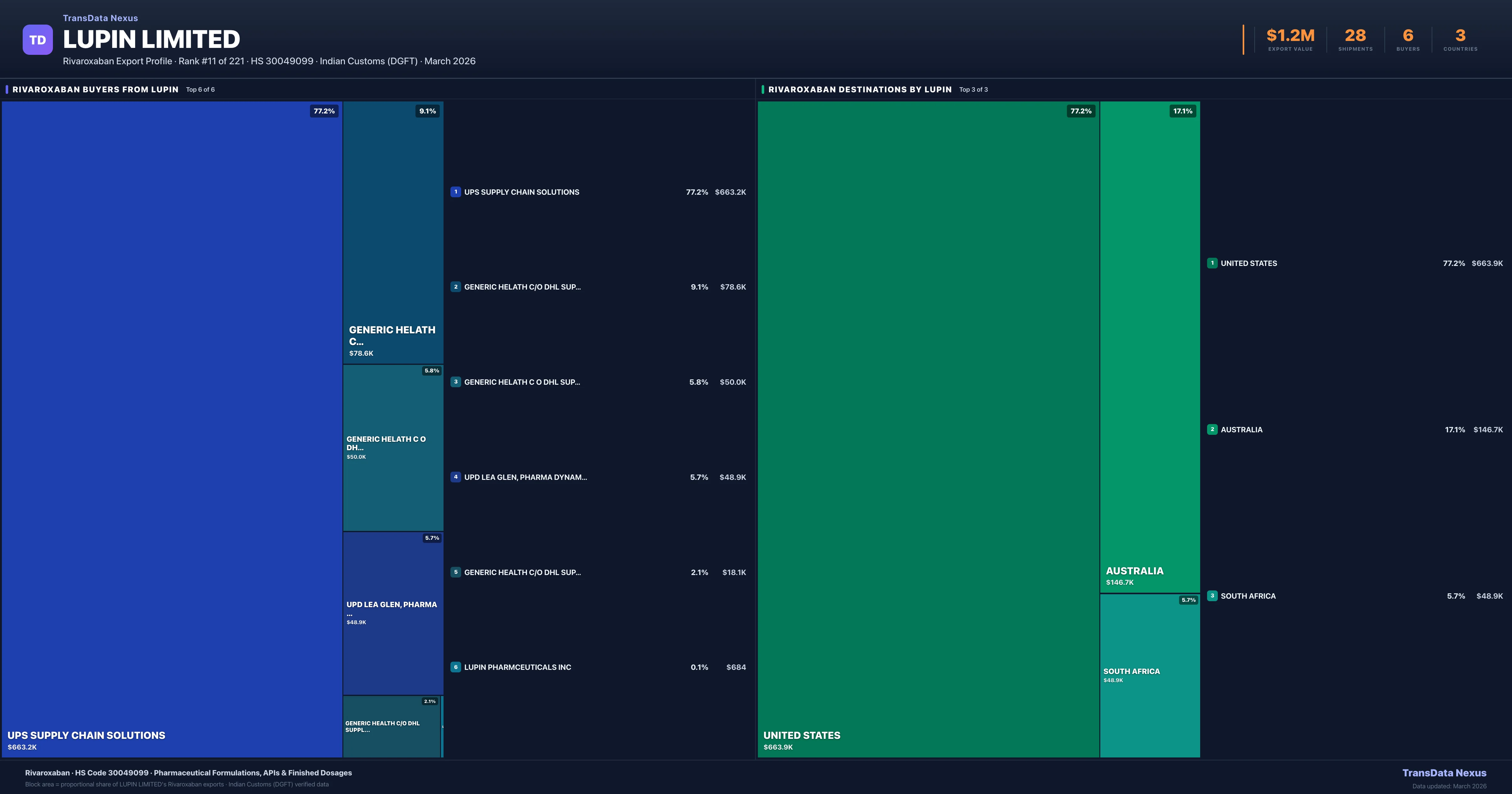 Lupin Limited β Rivaroxaban Export Profile: Buyers & Destinations