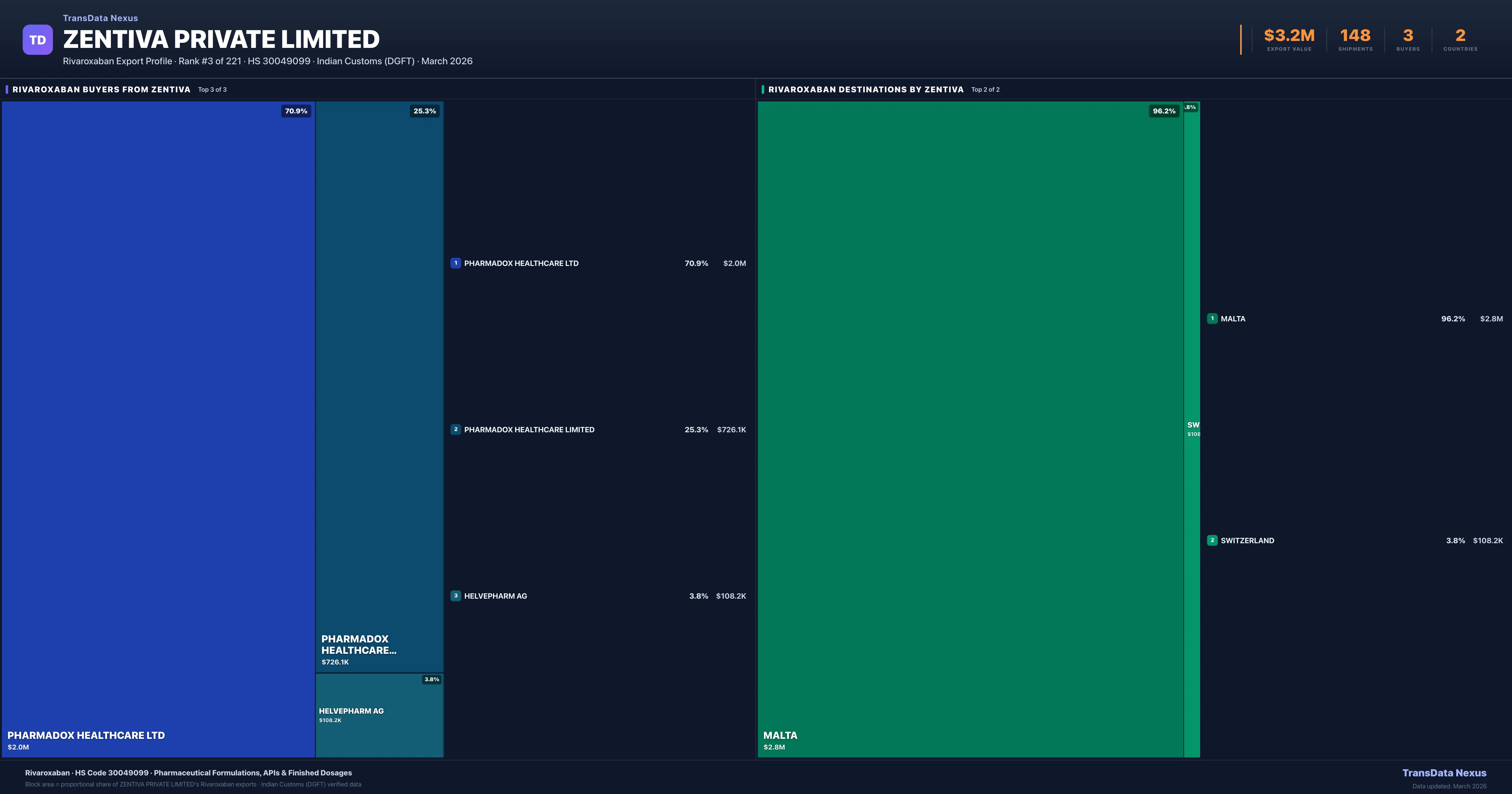 Zentiva Private Limited — Rivaroxaban Export Profile: Buyers & Destinations