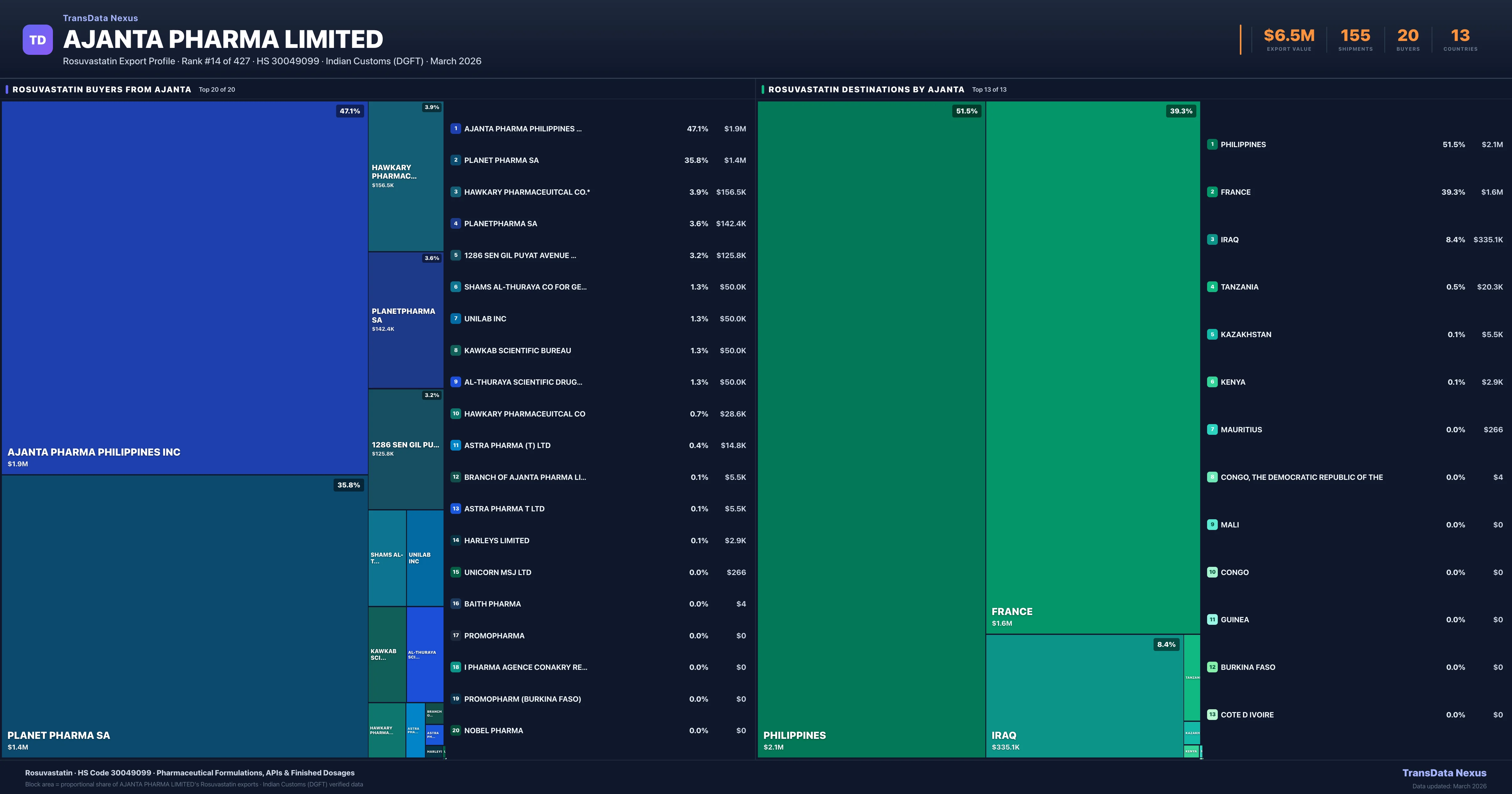 Ajanta Pharma Limited — Rosuvastatin Export Profile: Buyers & Destinations