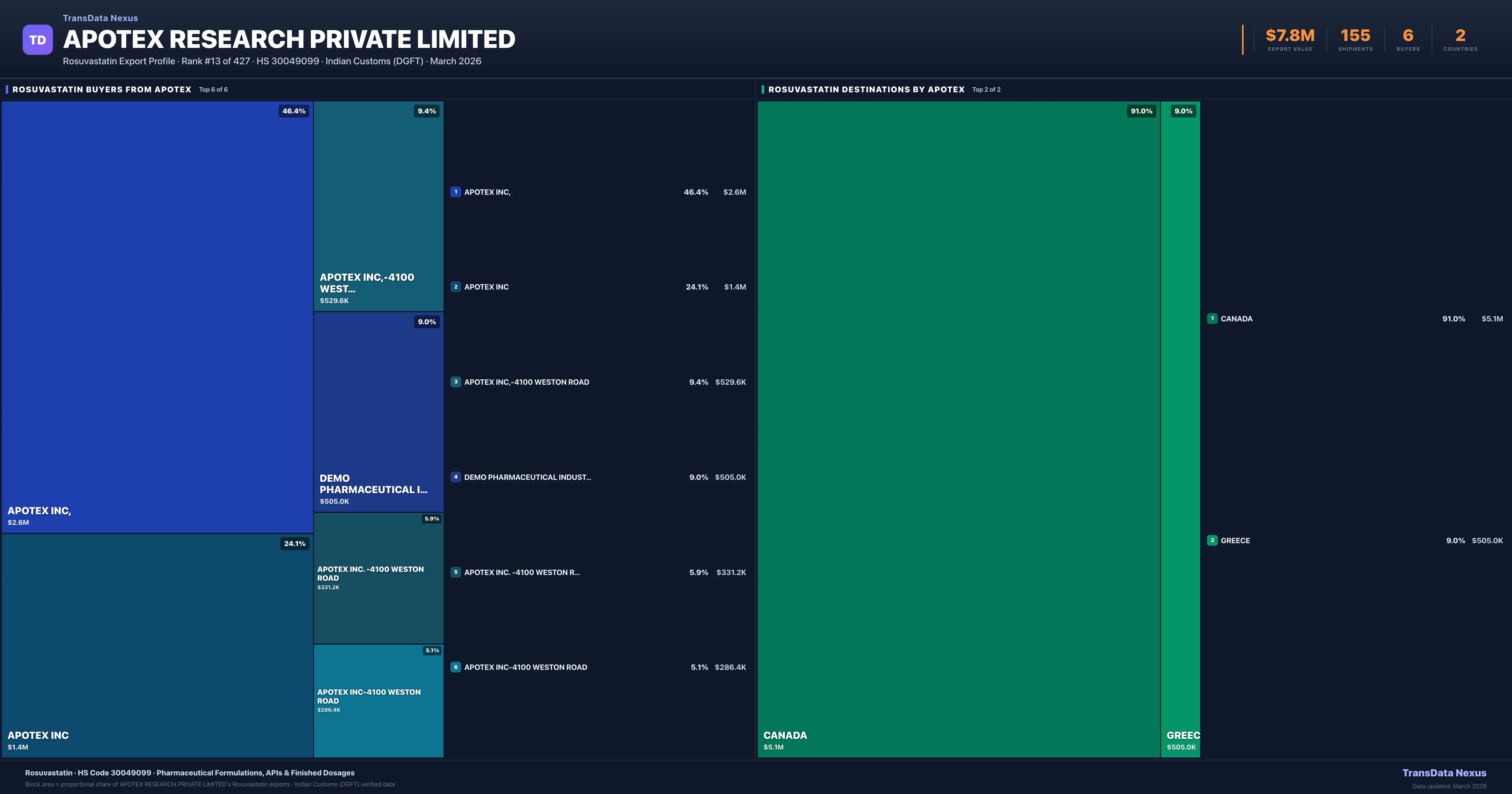 Apotex Research Private Limited — Rosuvastatin Export Profile: Buyers & Destinations