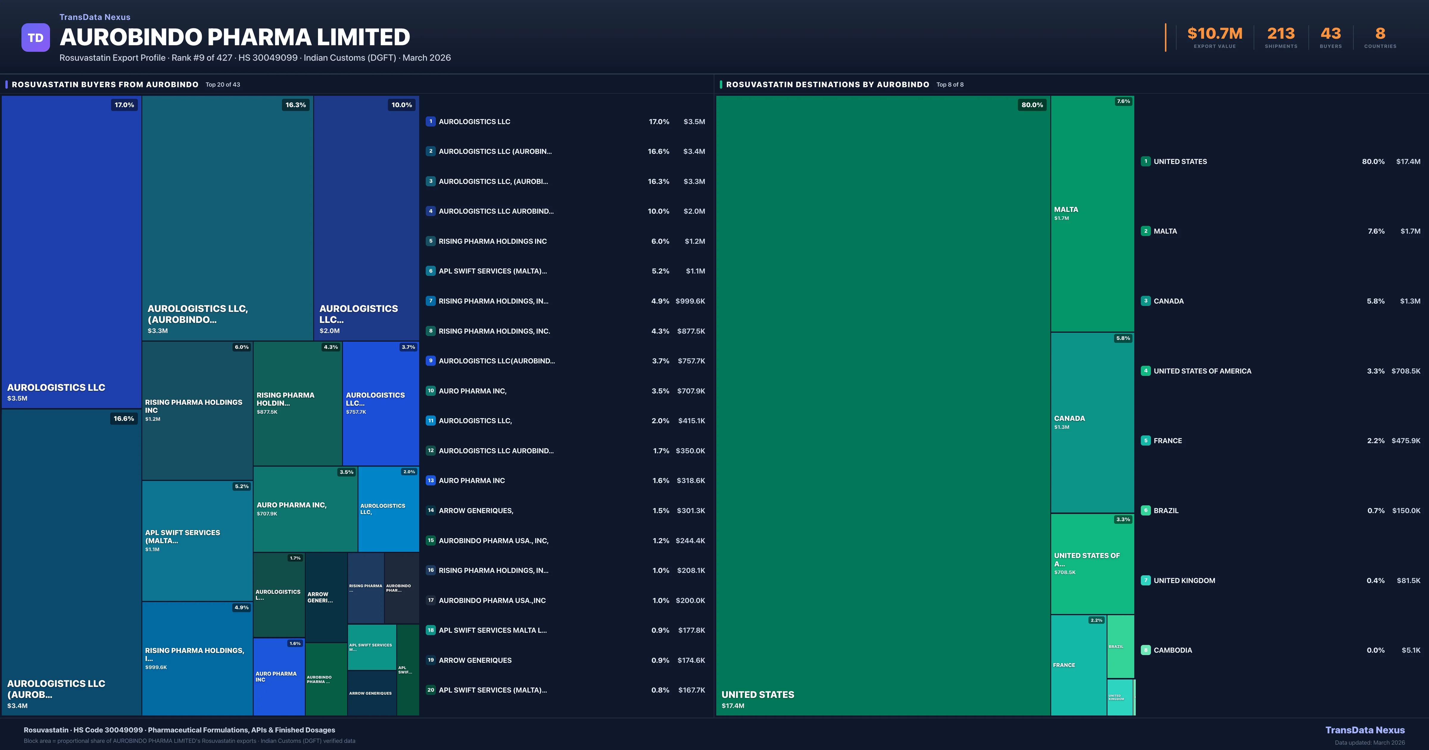 Aurobindo Pharma Limited — Rosuvastatin Export Profile: Buyers & Destinations