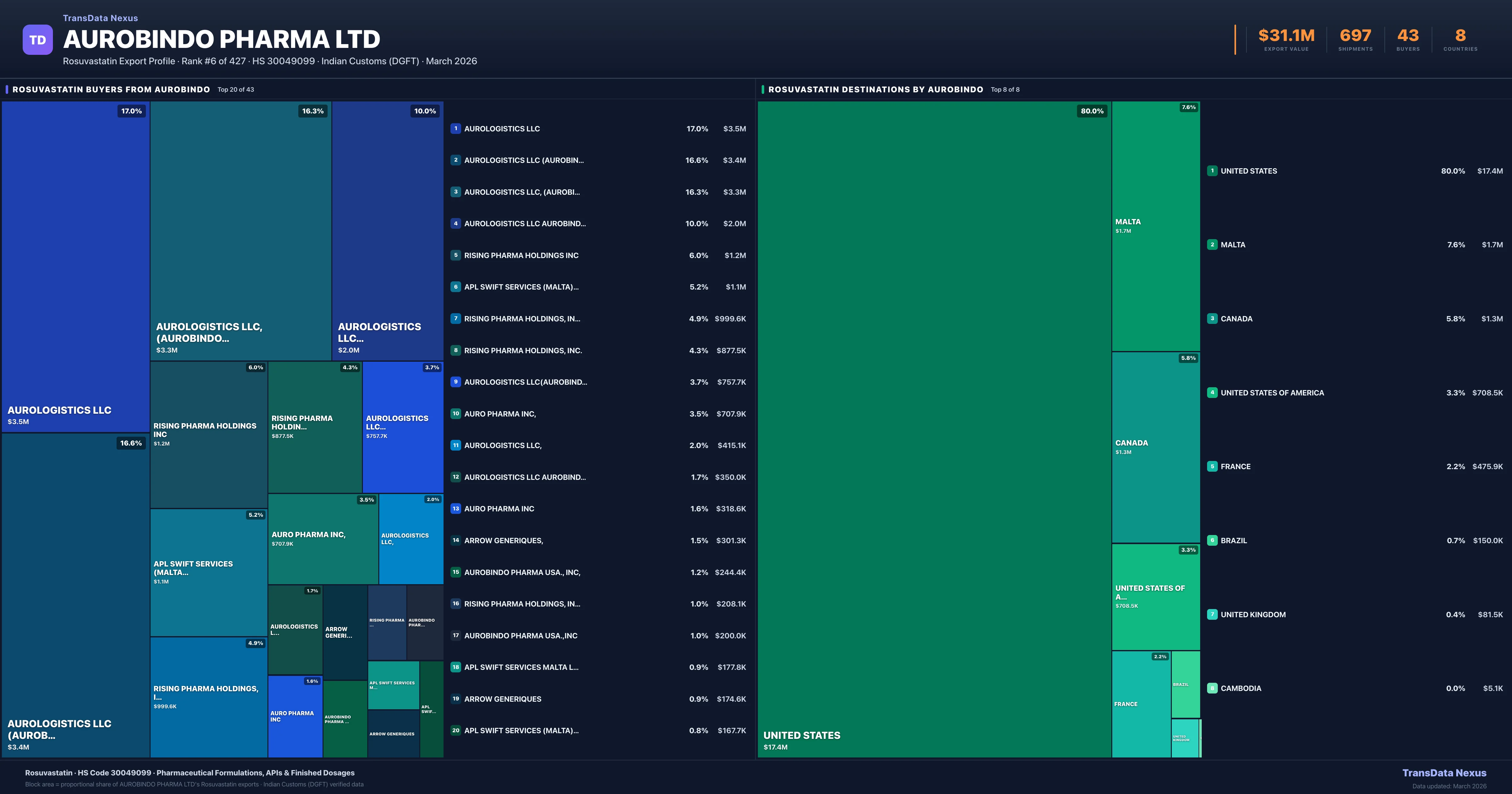 Aurobindo Pharma Ltd — Rosuvastatin Export Profile: Buyers & Destinations