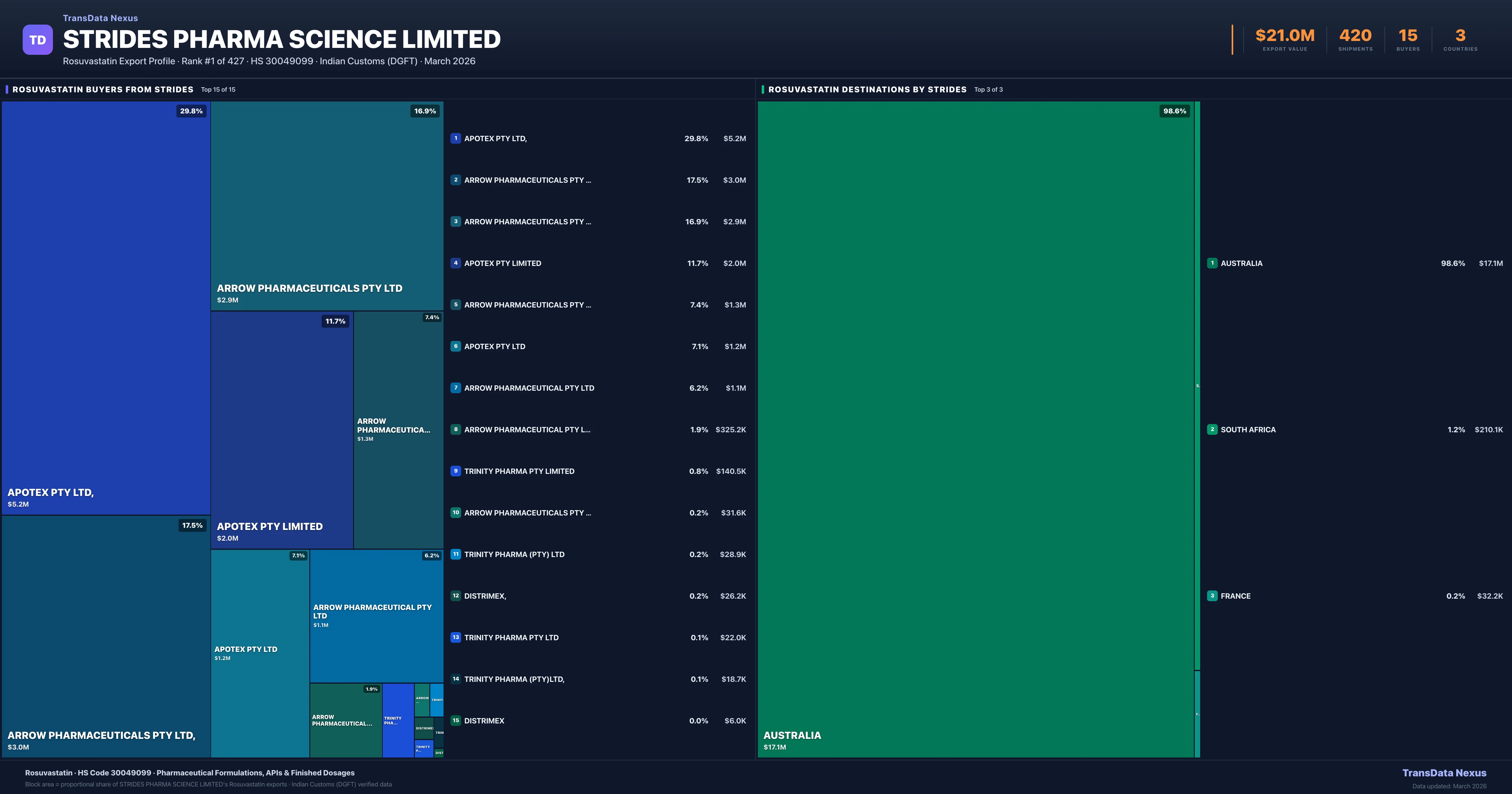 Strides Pharma Science Limited — Rosuvastatin Export Profile: Buyers & Destinations