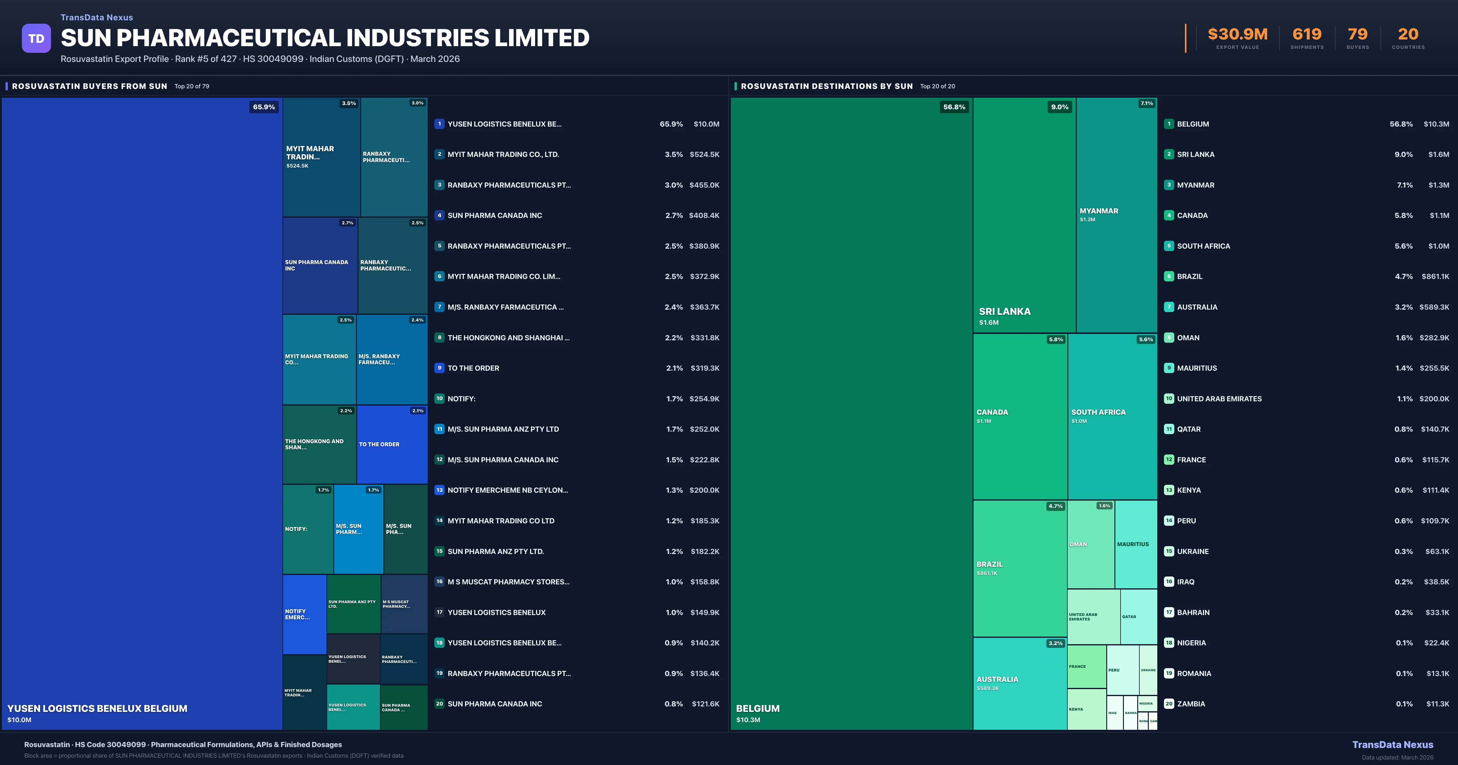 SUN Pharmaceutical Industries Limited — Rosuvastatin Export Profile: Buyers & Destinations