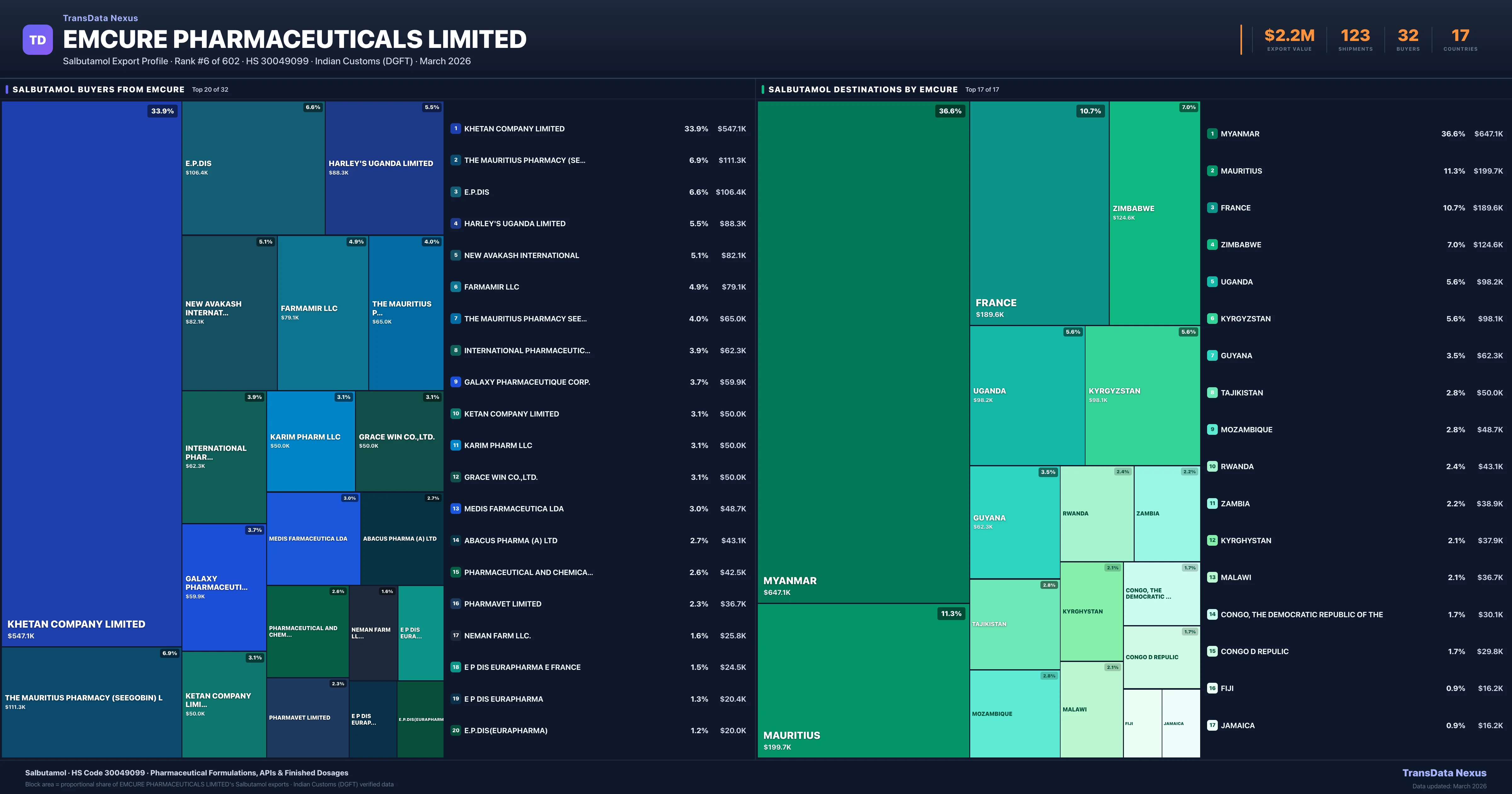 Emcure Pharmaceuticals Limited — Salbutamol Export Profile: Buyers & Destinations
