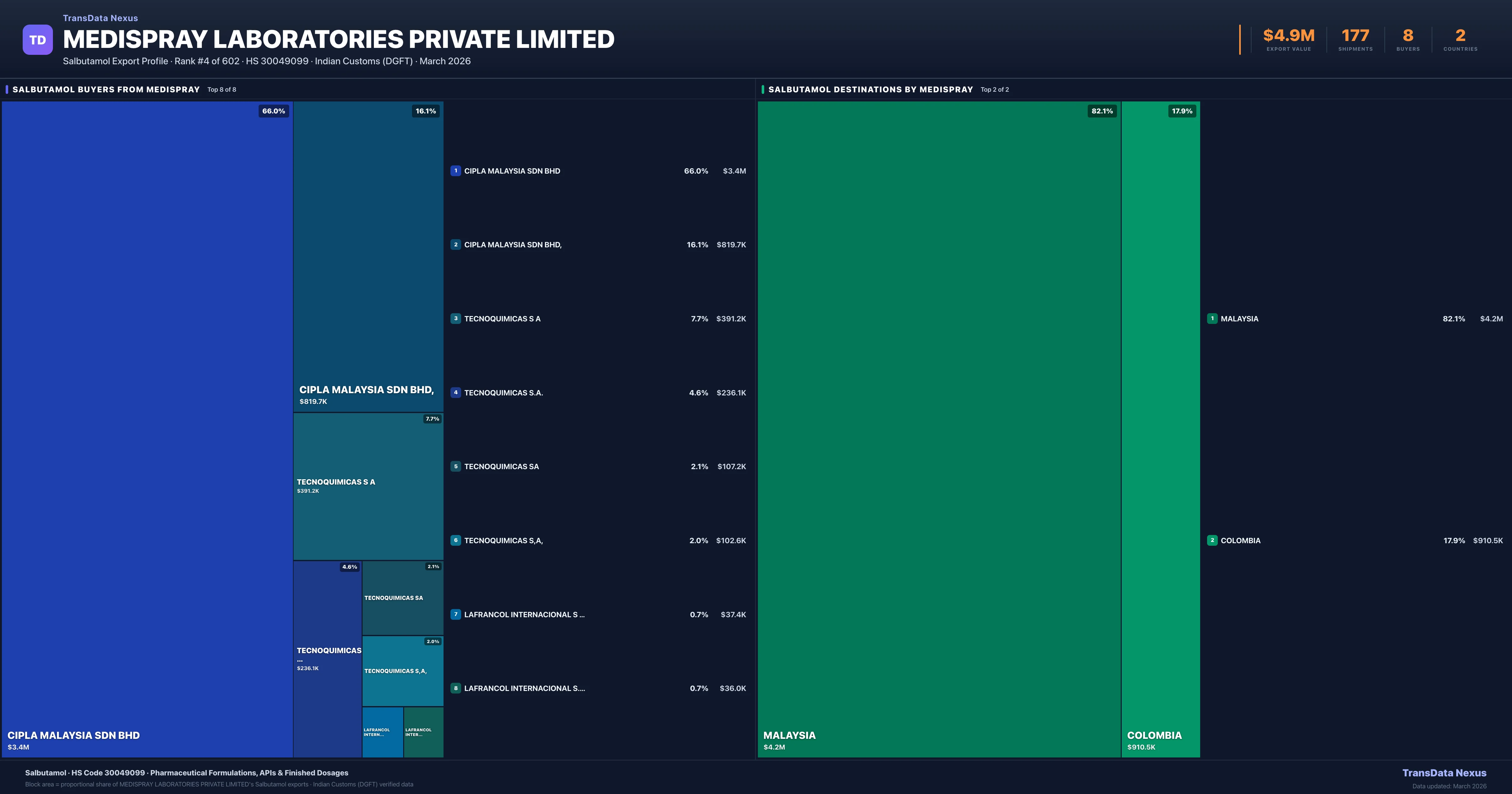 Medispray Laboratories Private Limited — Salbutamol Export Profile: Buyers & Destinations