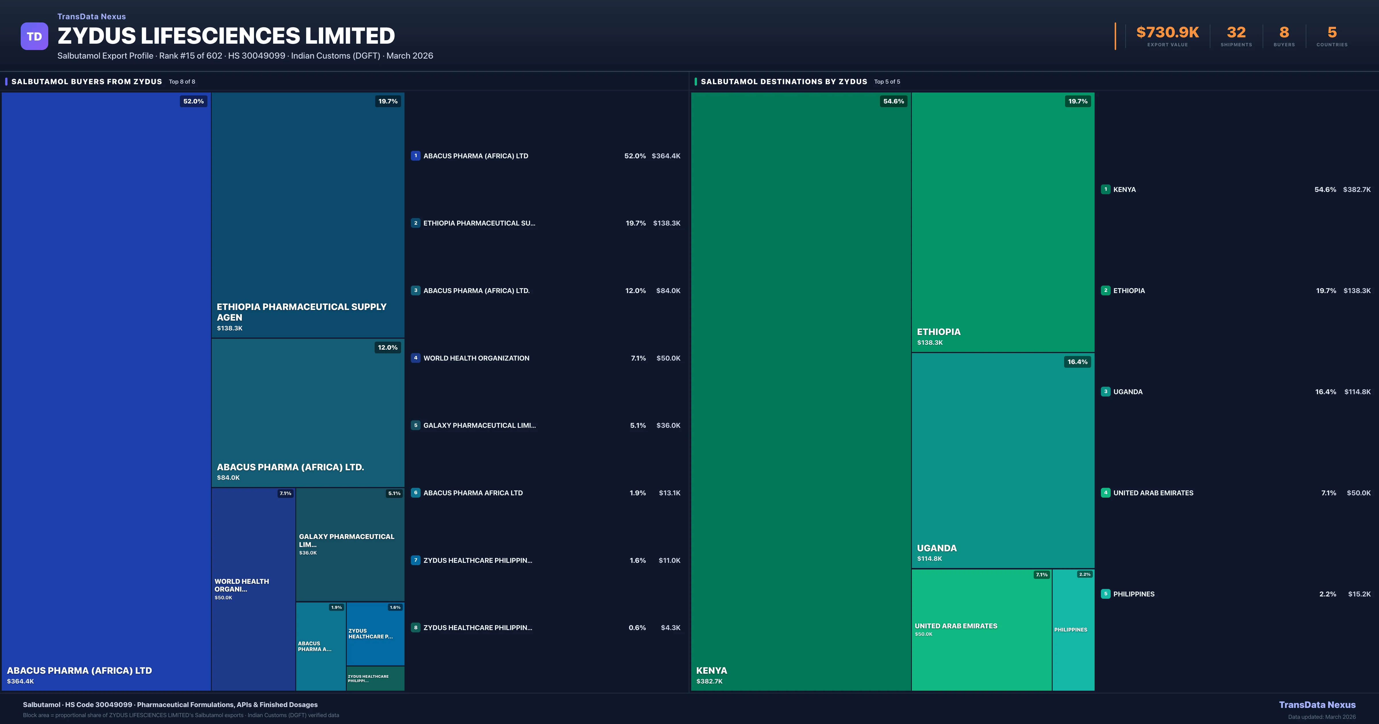 Zydus Lifesciences Limited β Salbutamol Export Profile: Buyers & Destinations