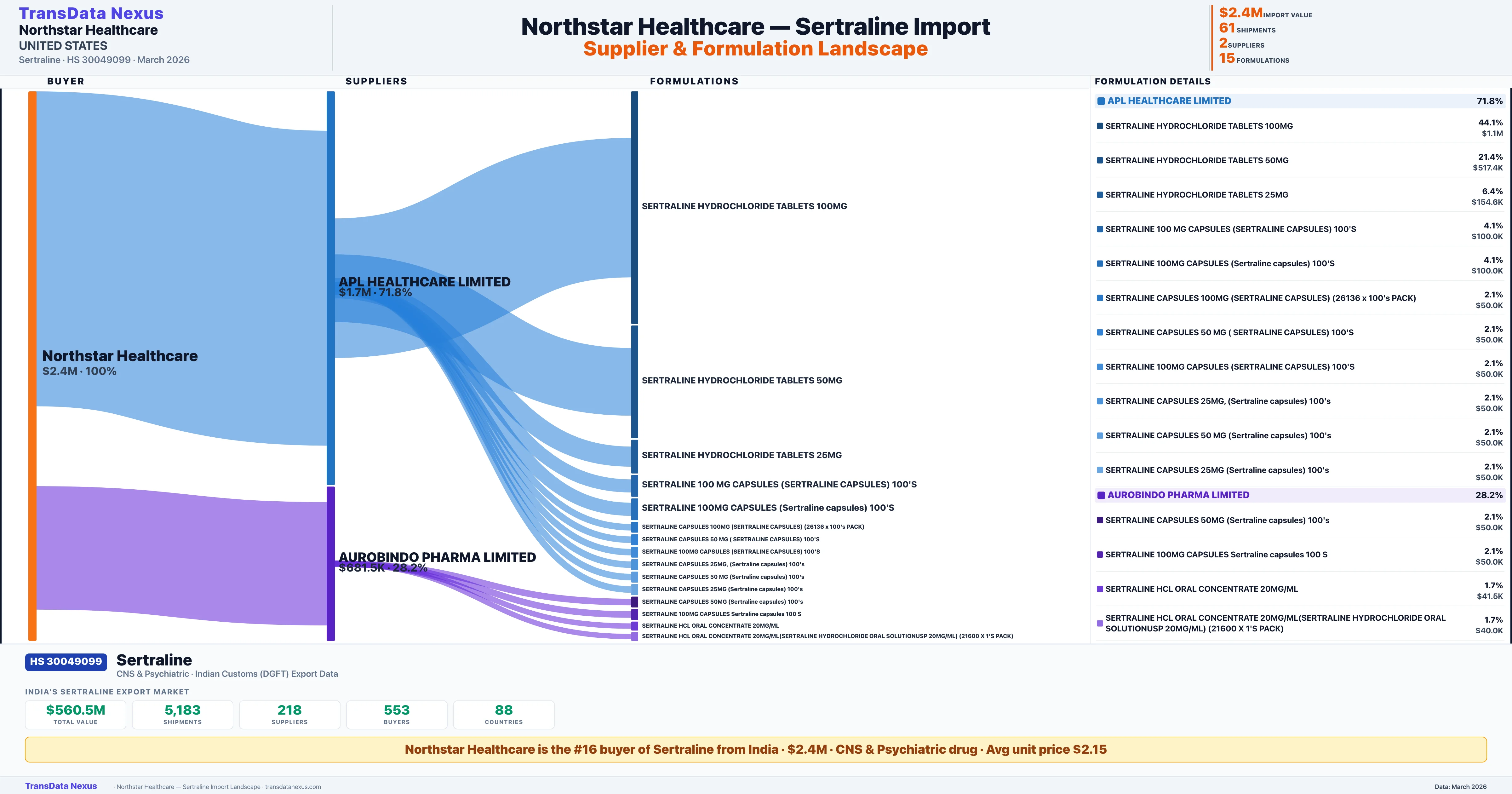 NORTHSTAR HEALTHCARE β Sertraline Import Profile: Suppliers, Formulations & Sources