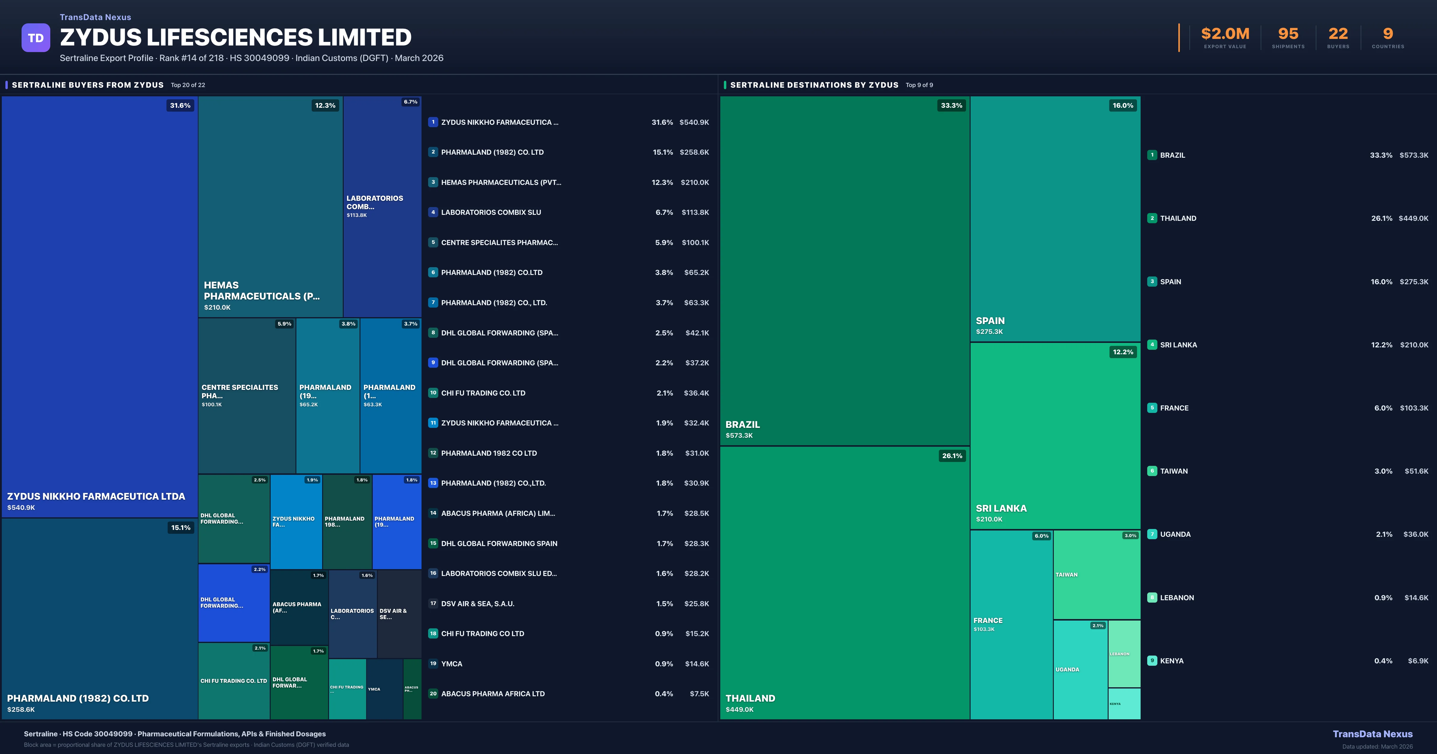 Zydus Lifesciences Limited — Sertraline Export Profile: Buyers & Destinations