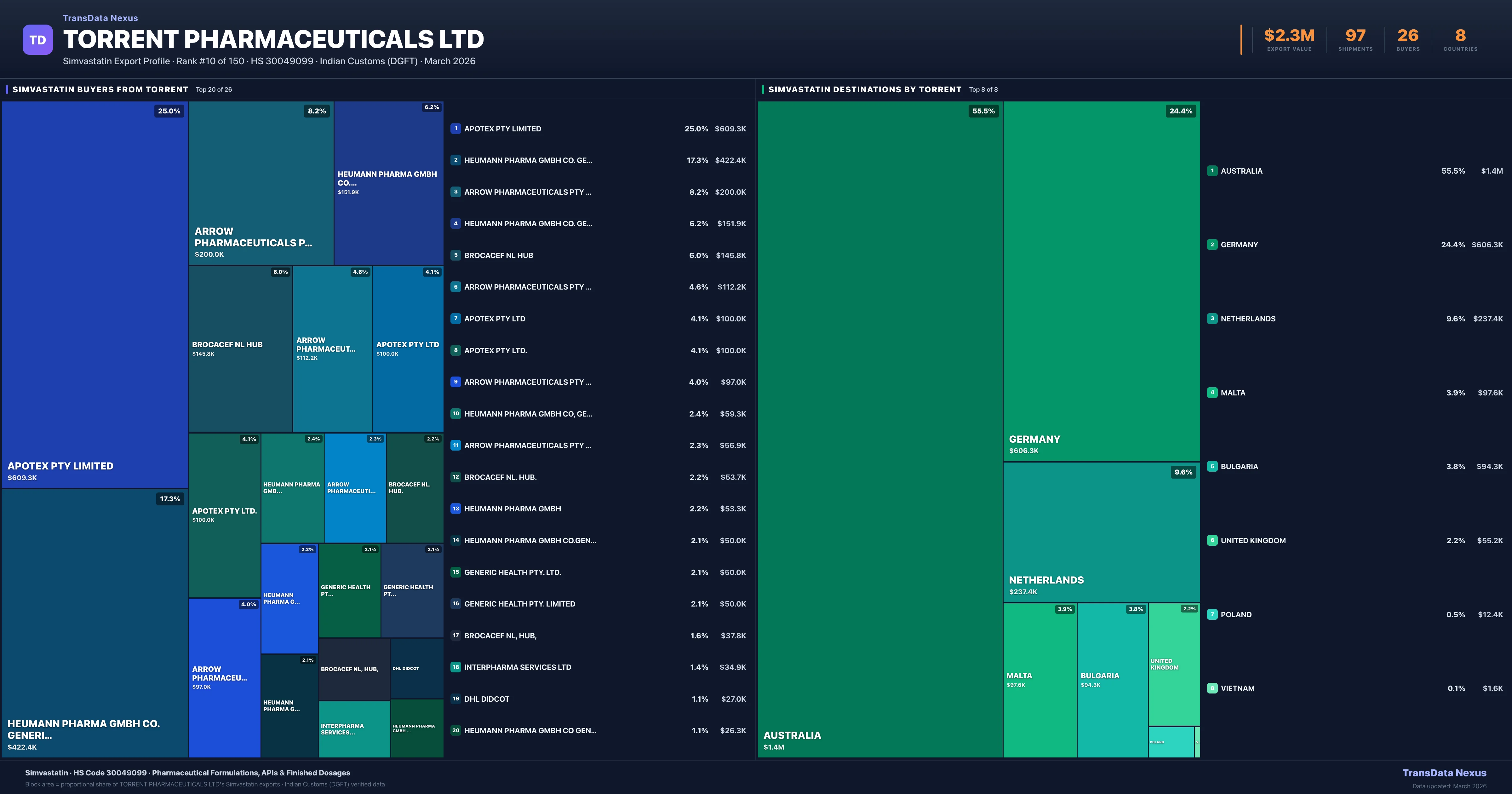 Torrent Pharmaceuticals Ltd — Simvastatin Export Profile: Buyers & Destinations