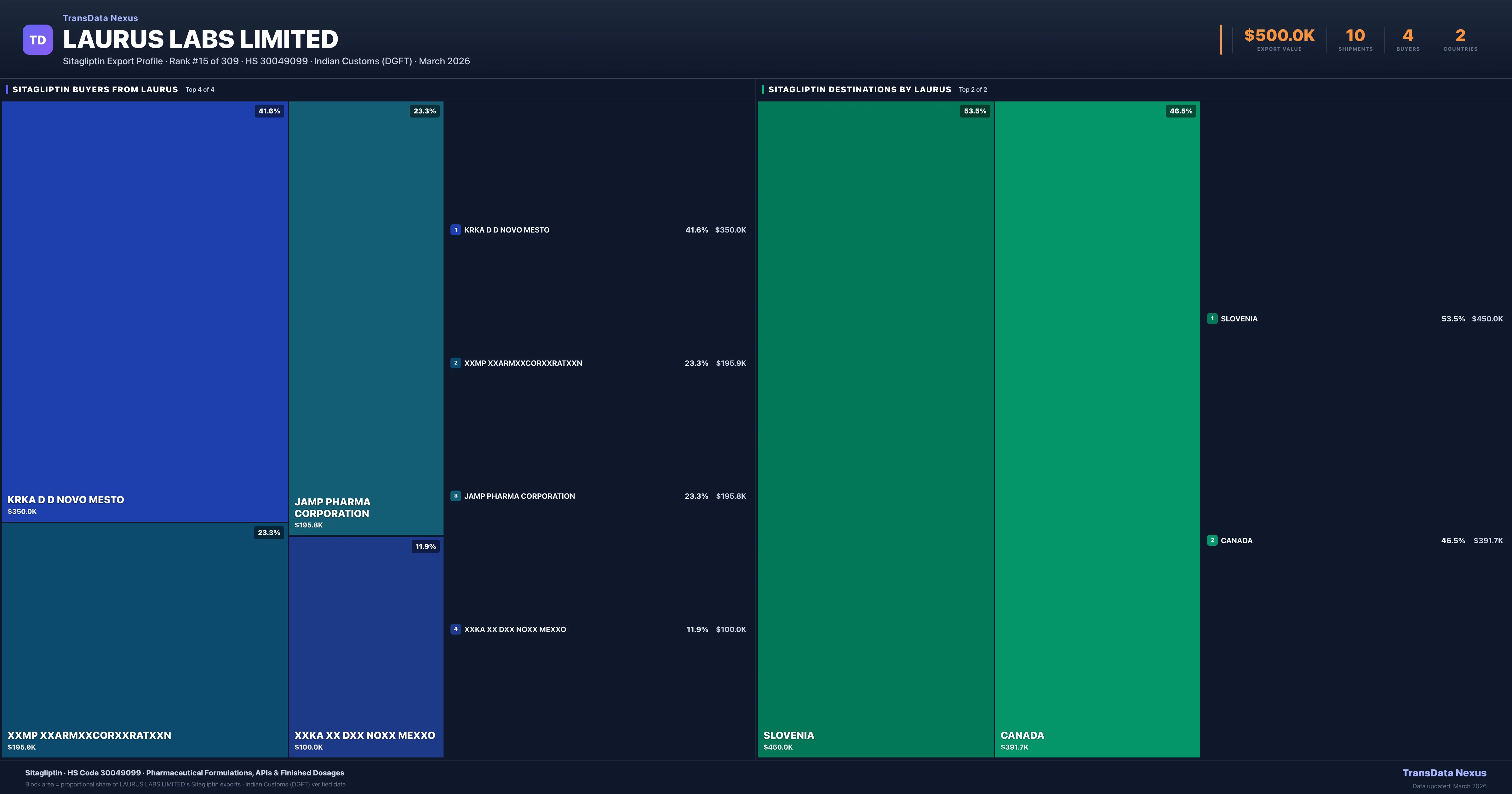 Laurus Labs Limited — Sitagliptin Export Profile: Buyers & Destinations