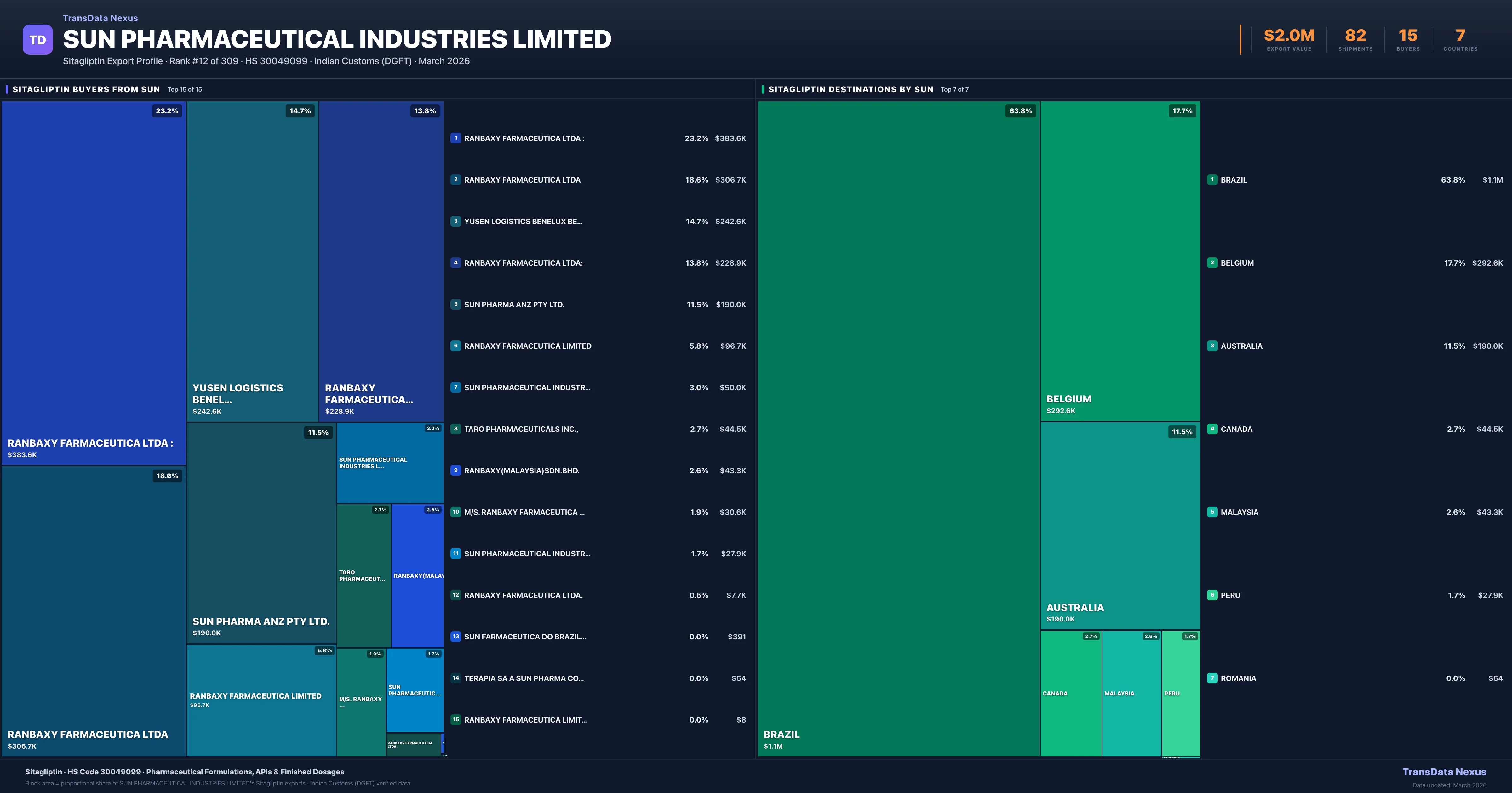 SUN Pharmaceutical Industries Limited — Sitagliptin Export Profile: Buyers & Destinations