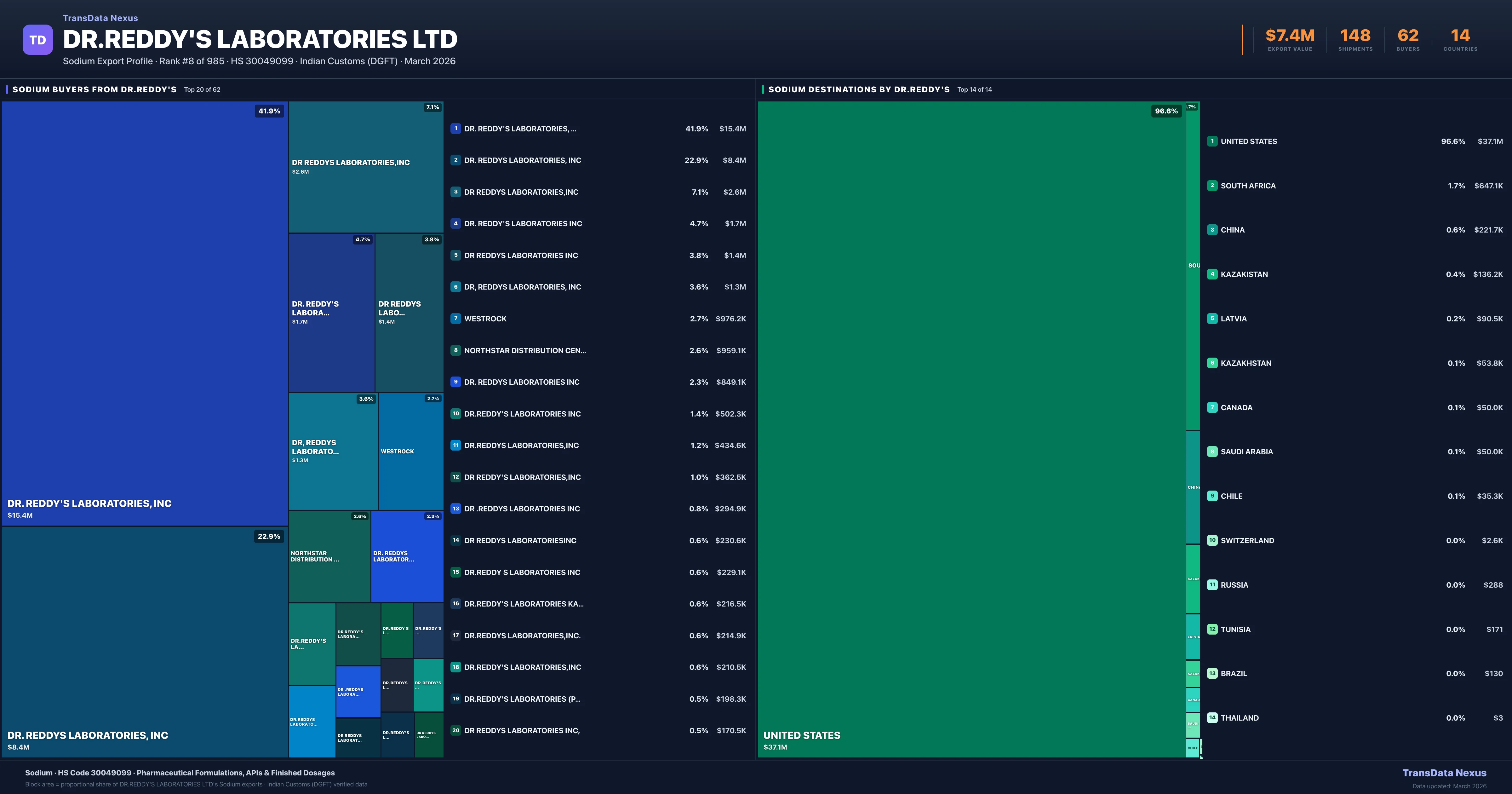 Dr.reddy's Laboratories Ltd — Sodium Export Profile: Buyers & Destinations