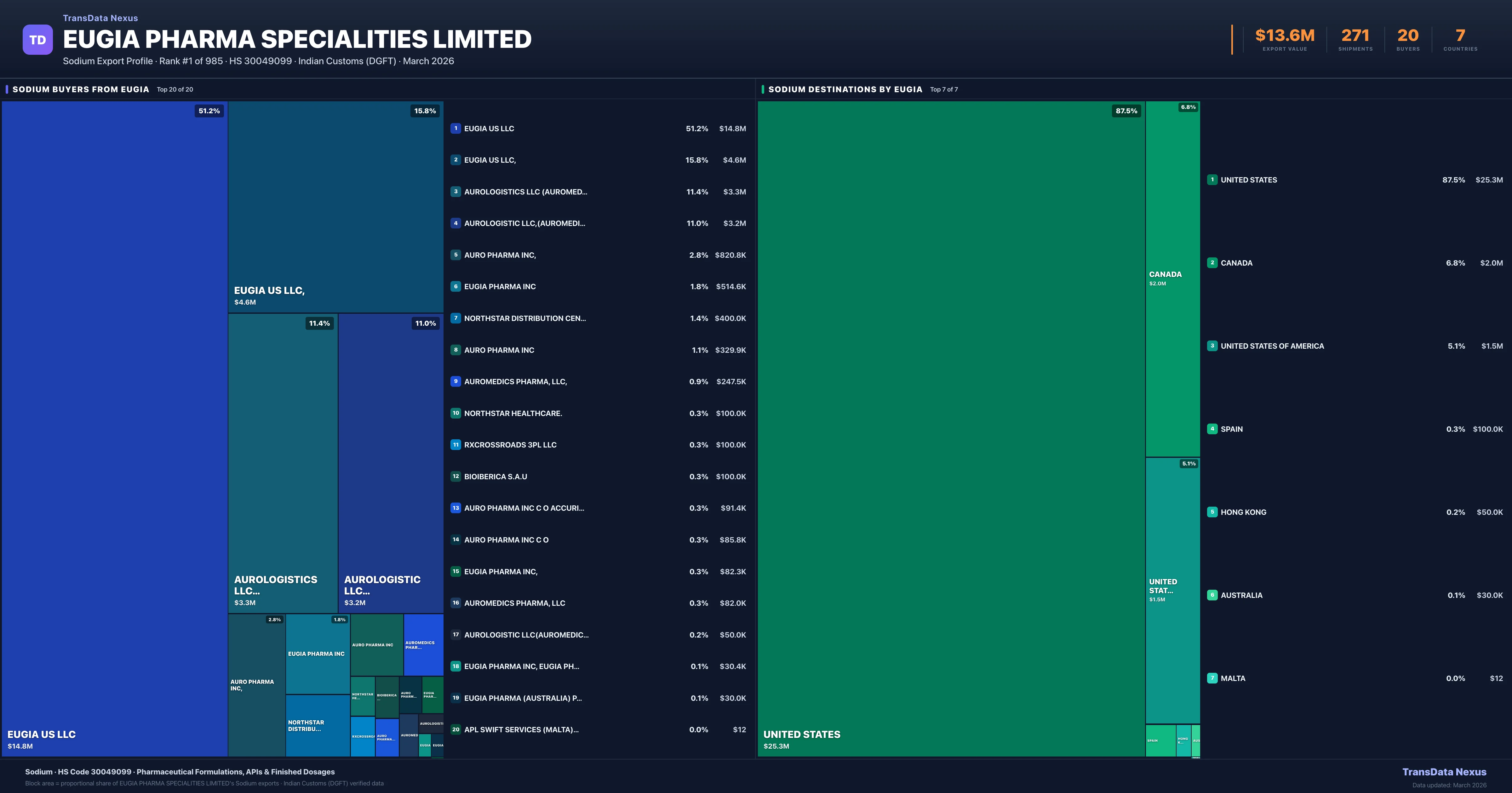 Eugia Pharma Specialities Limited β Sodium Export Profile: Buyers & Destinations