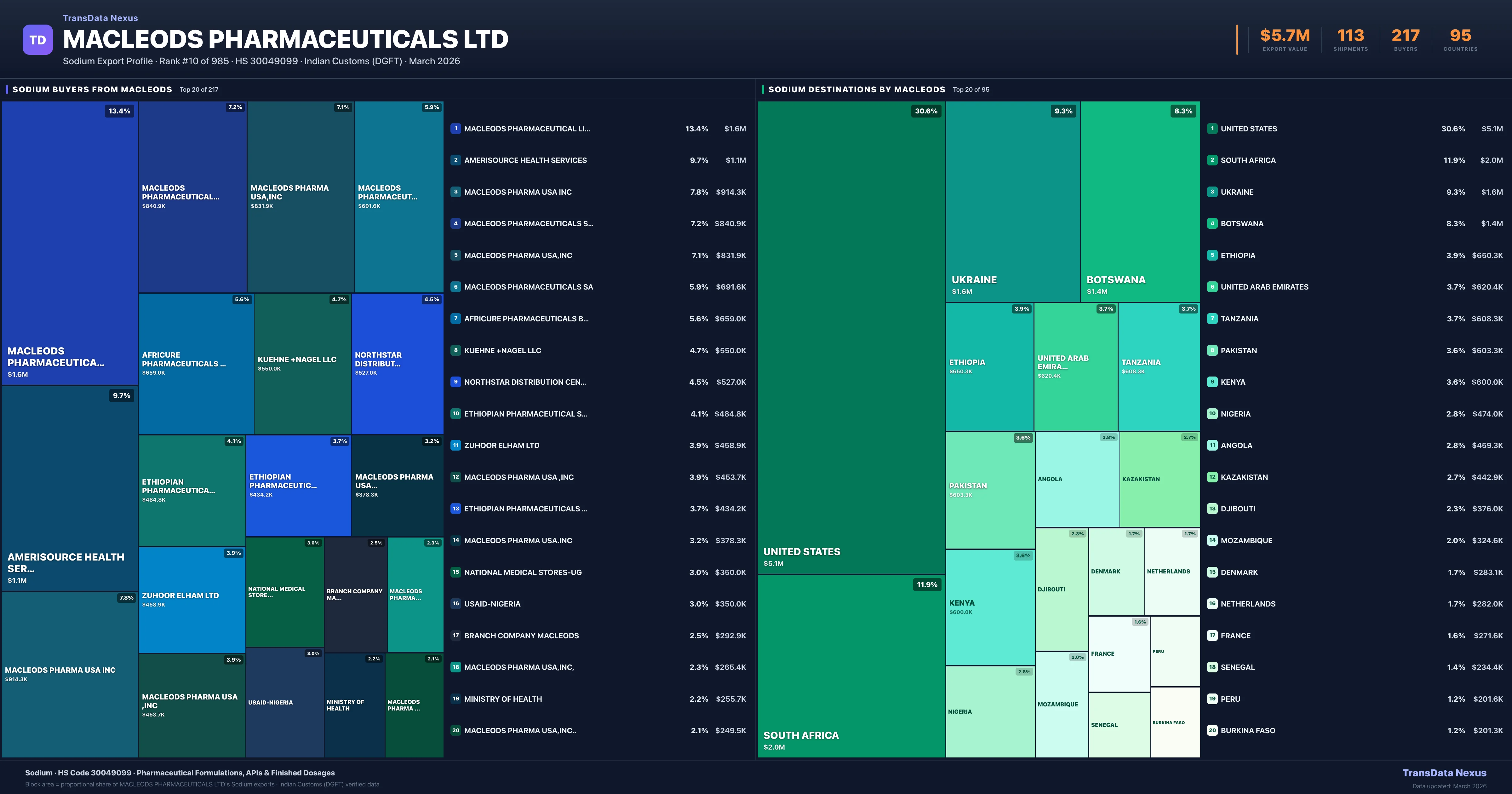 Macleods Pharmaceuticals Ltd — Sodium Export Profile: Buyers & Destinations