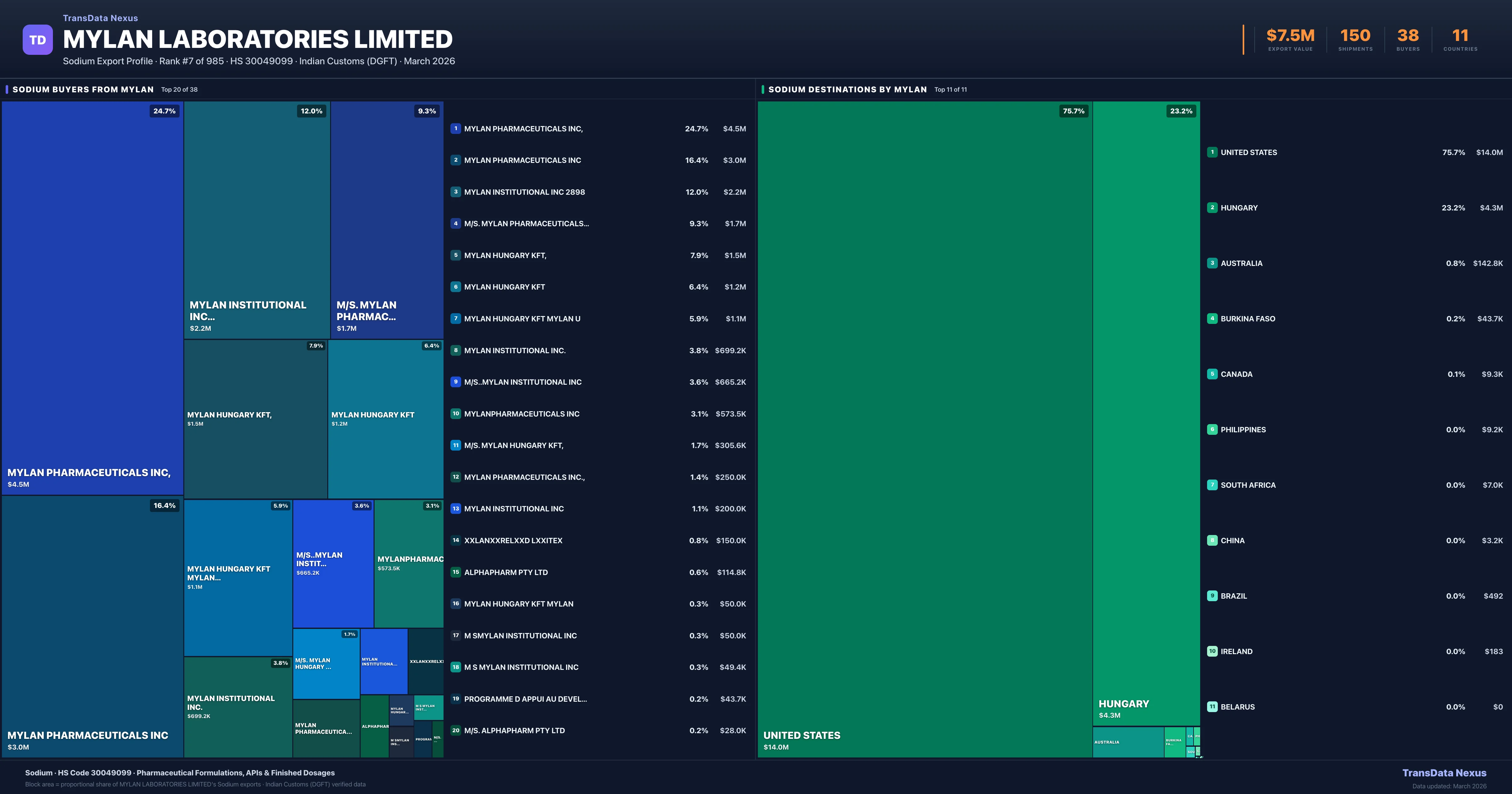 Mylan Laboratories Limited — Sodium Export Profile: Buyers & Destinations