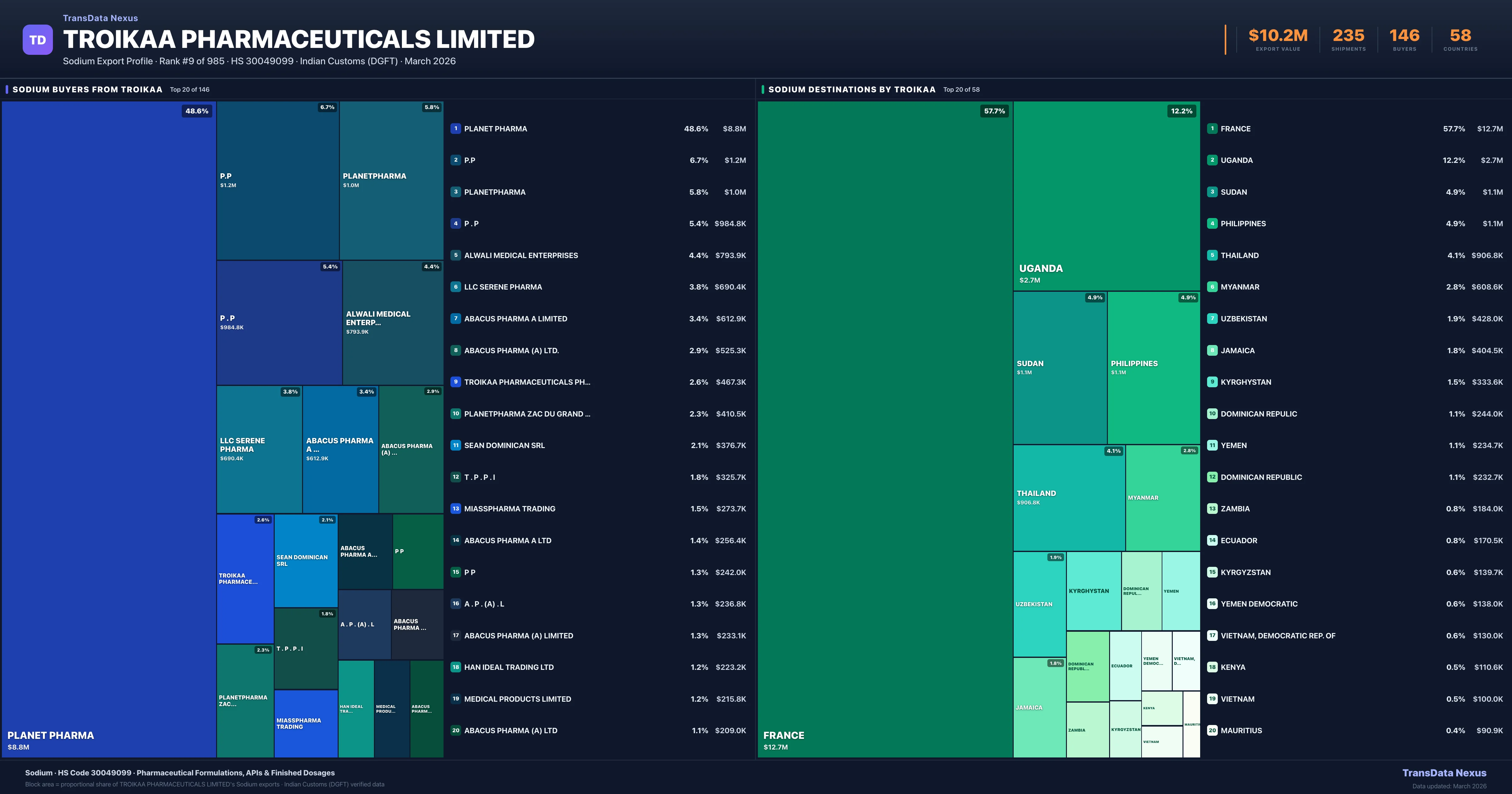 Troikaa Pharmaceuticals Limited — Sodium Export Profile: Buyers & Destinations