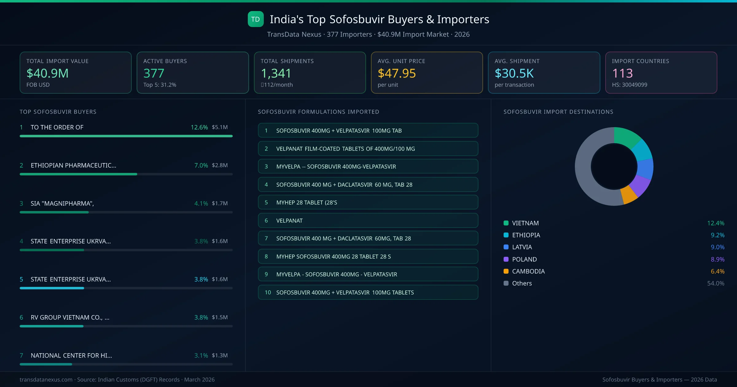 Who Buys Sofosbuvir from India β 377 Importers Behind a $40.9M Market