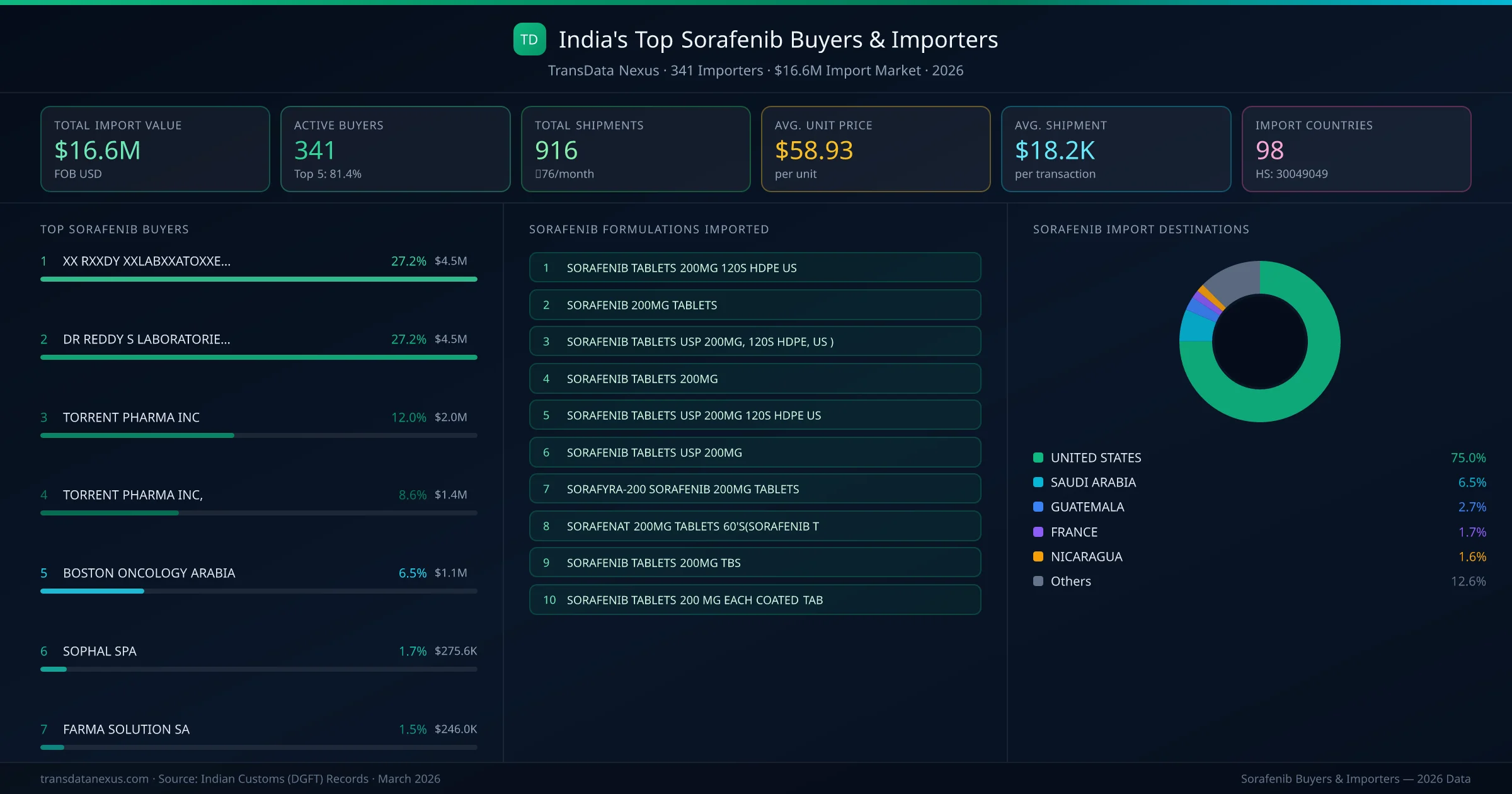 Who Buys Sorafenib from India โ 341 Importers Behind a $16.6M Market