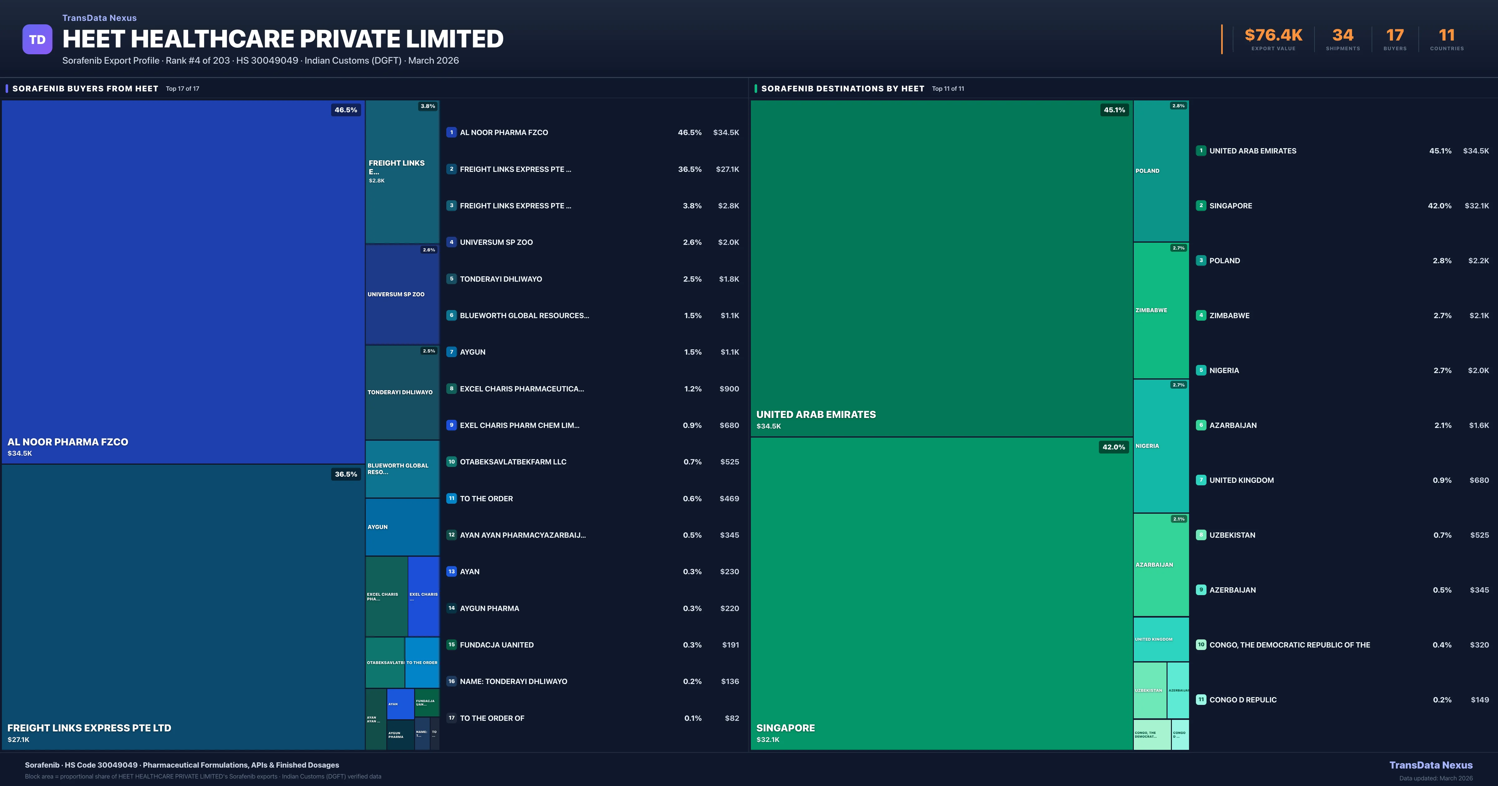 Heet Healthcare Private Limited — Sorafenib Export Profile: Buyers & Destinations
