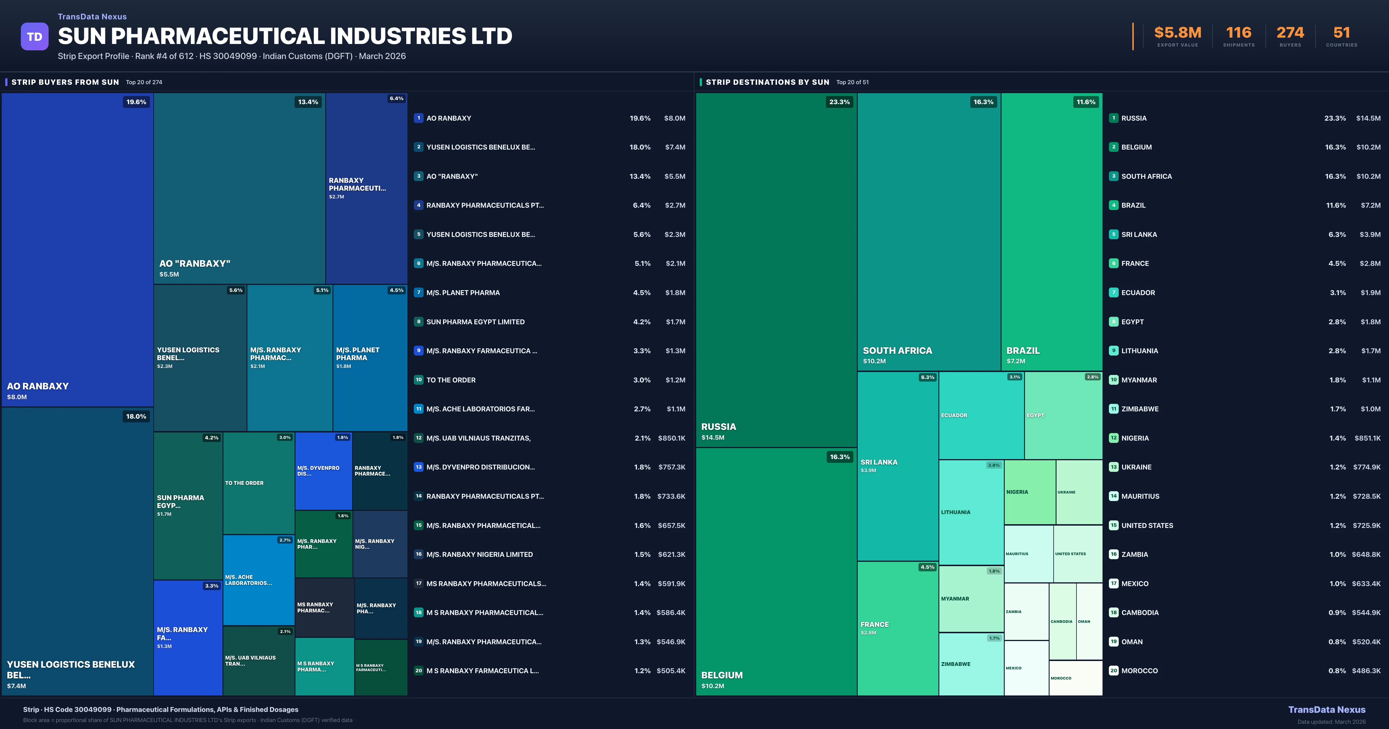 Sun Pharmaceutical Industries Ltd — Strip Export Profile: Buyers & Destinations