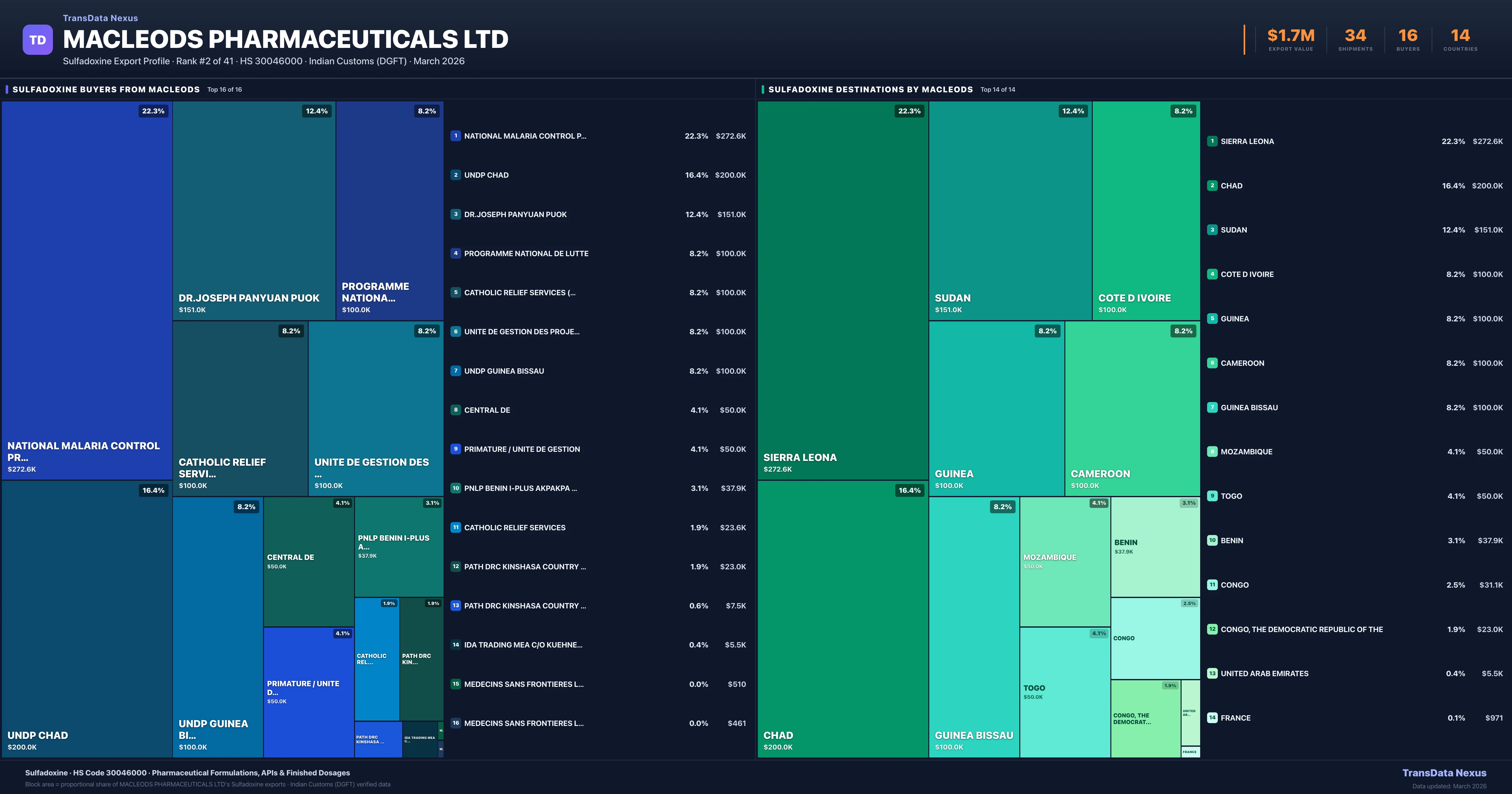 Macleods Pharmaceuticals Ltd — Sulfadoxine Export Profile: Buyers & Destinations