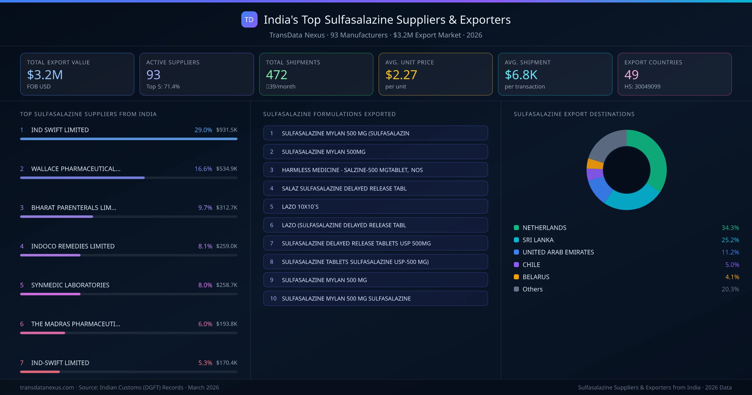 Who Exports Sulfasalazine from India โ 93 Suppliers Behind a $3.2M Market