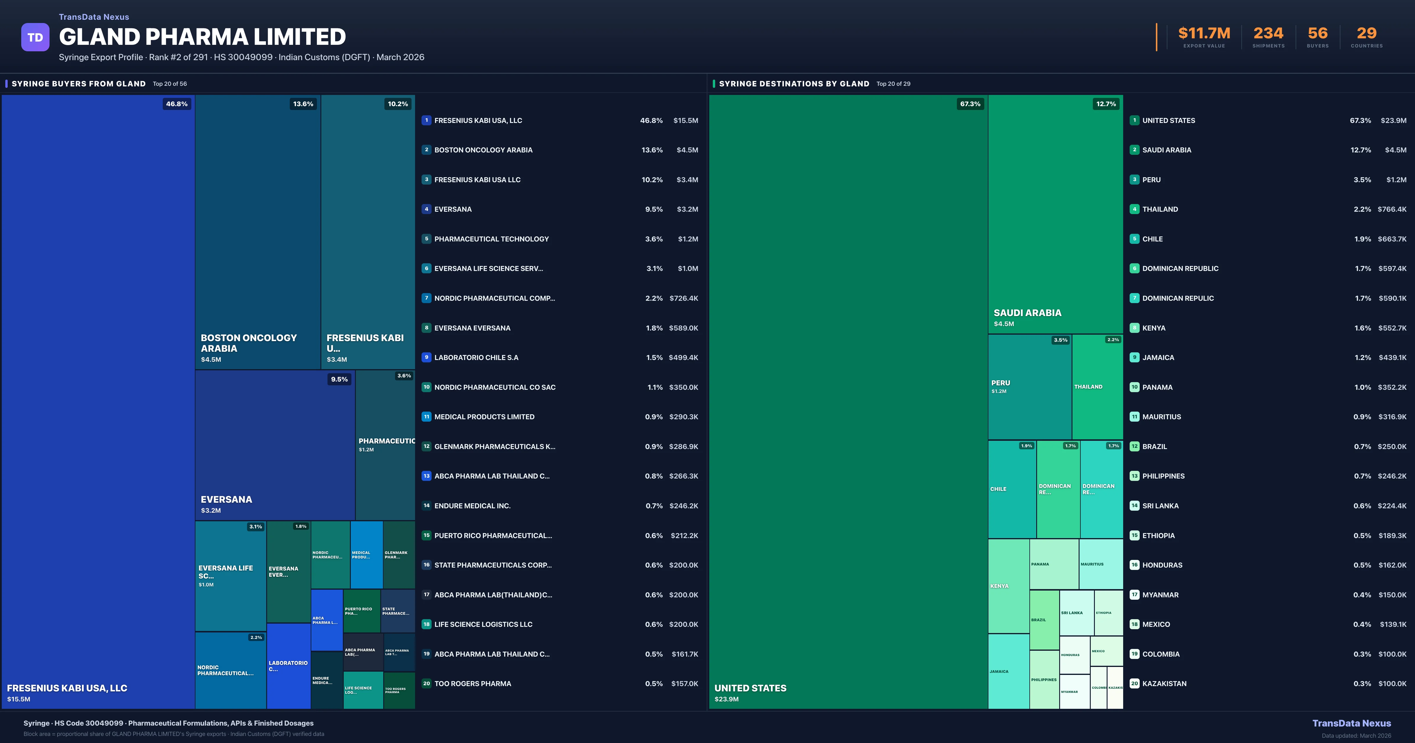 Gland Pharma Limited β Syringe Export Profile: Buyers & Destinations