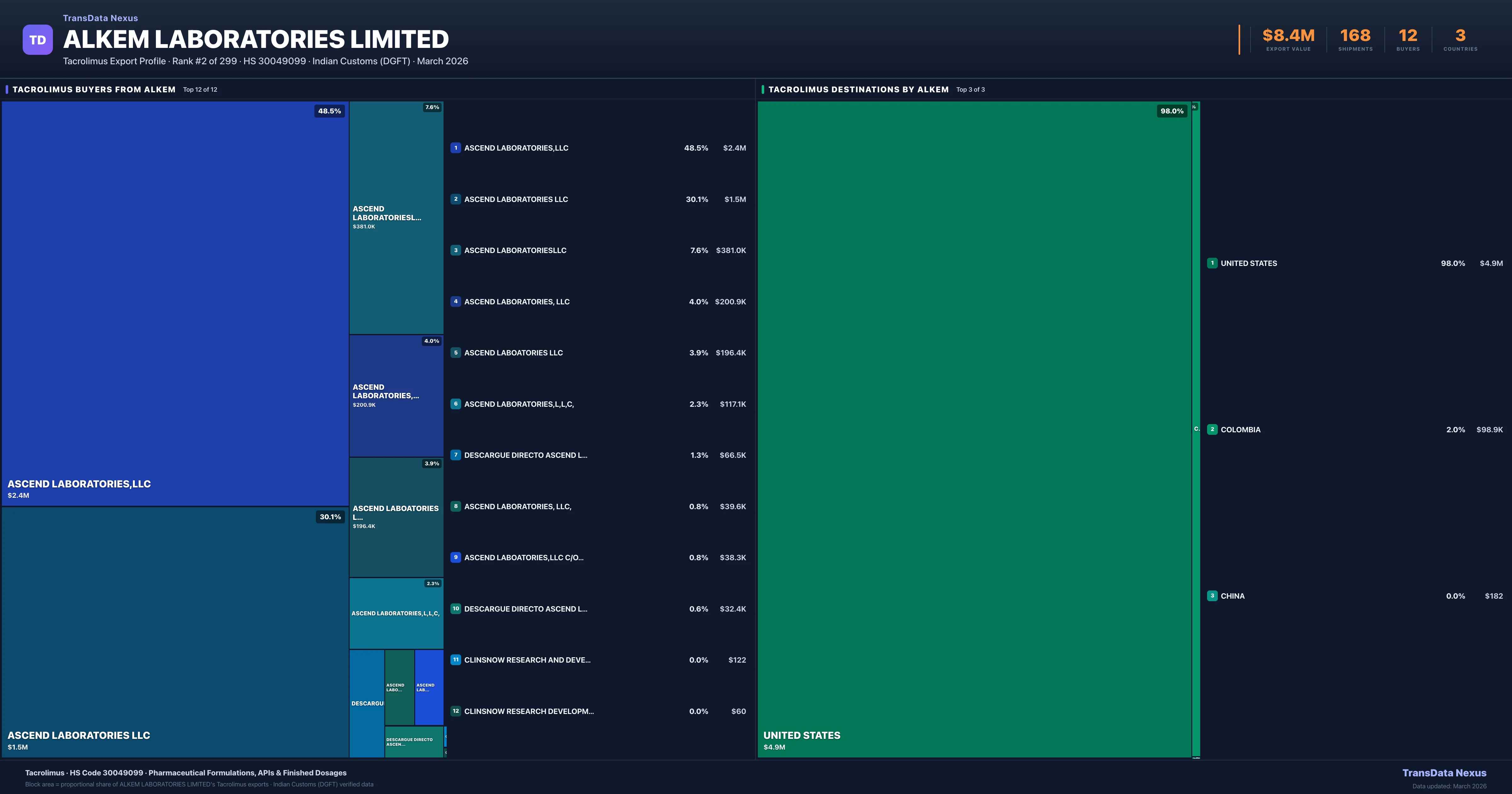 Alkem Laboratories Limited — Tacrolimus Export Profile: Buyers & Destinations