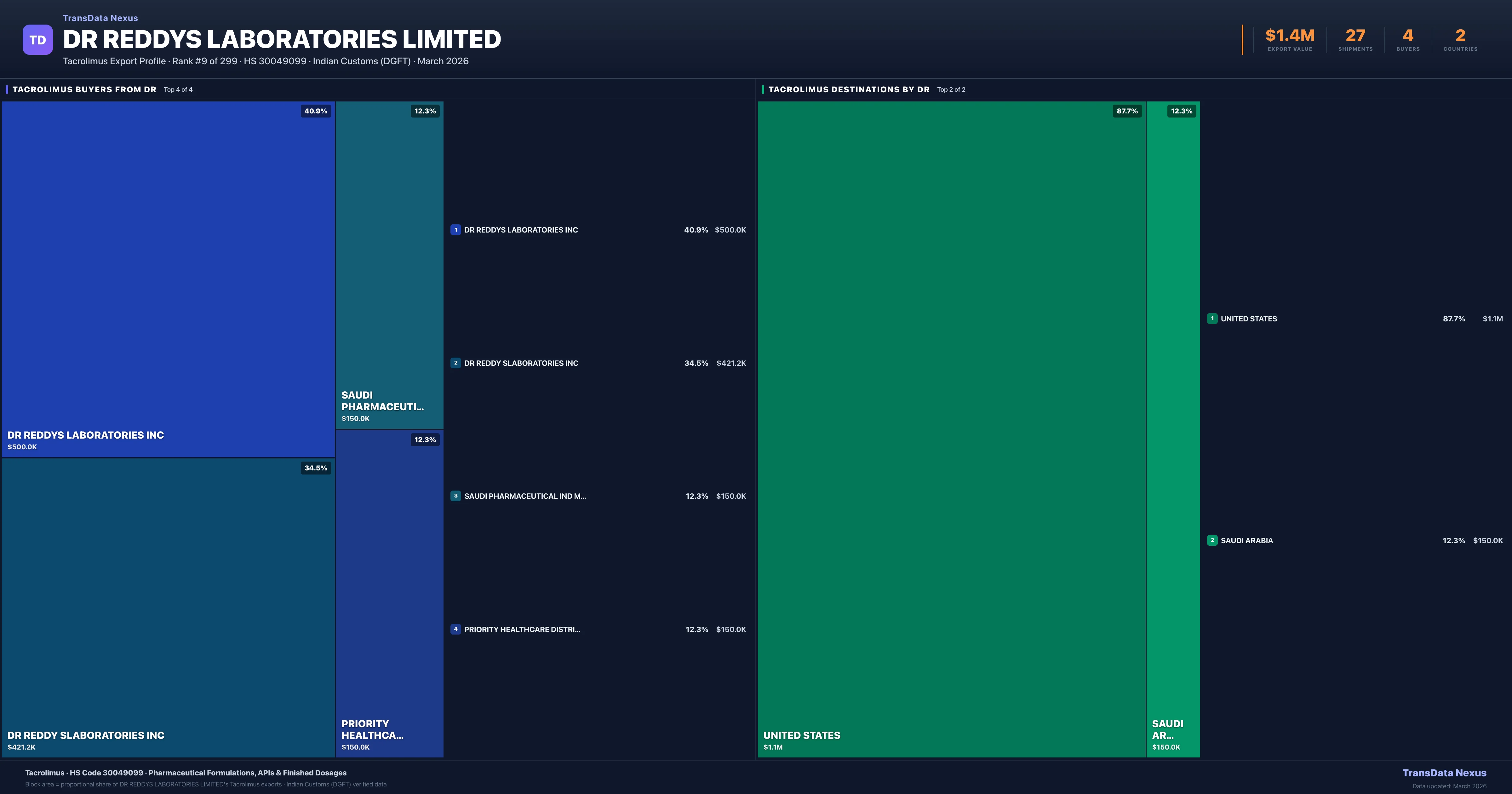 DR Reddys Laboratories Limited — Tacrolimus Export Profile: Buyers & Destinations