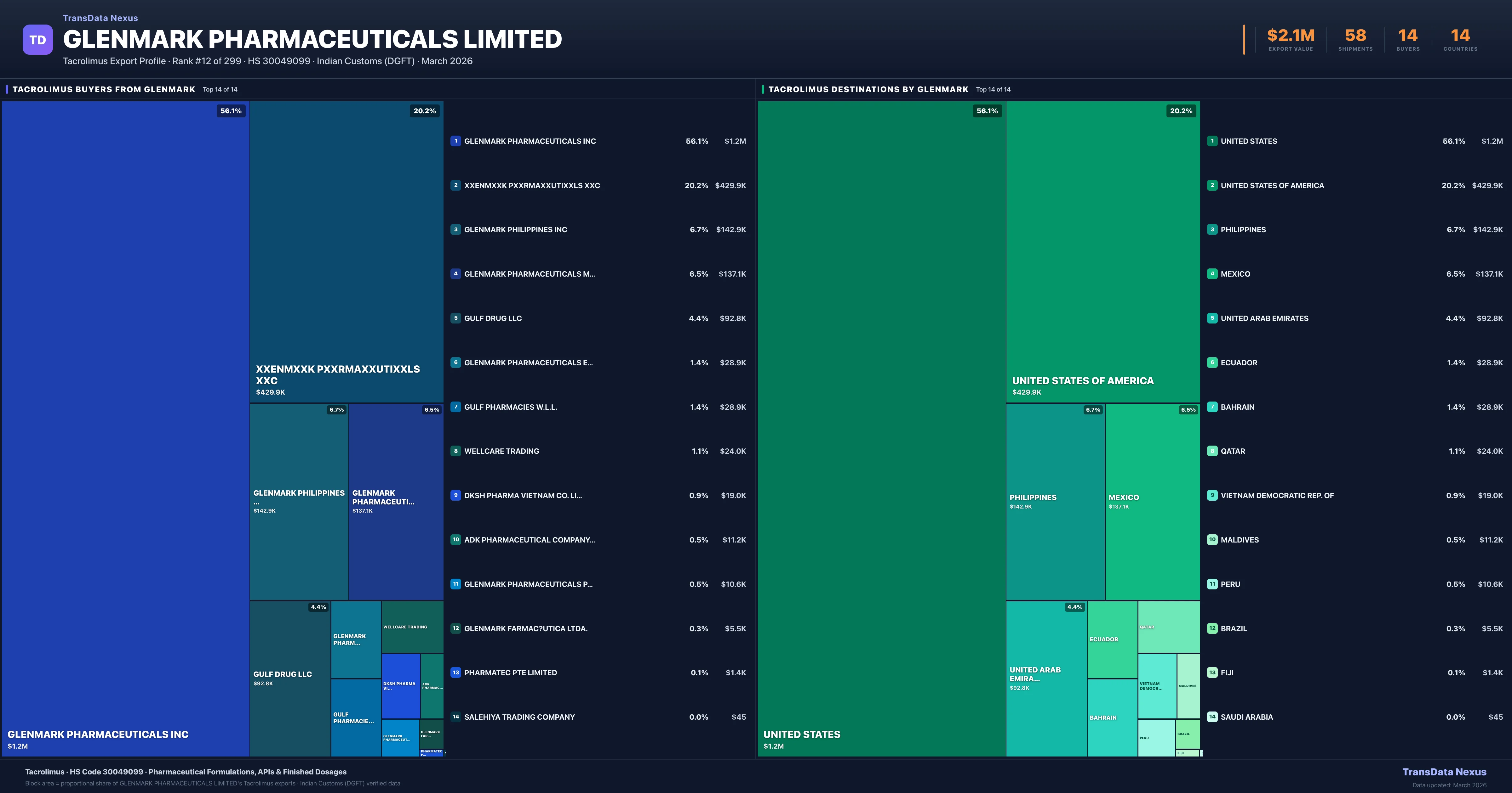 Glenmark Pharmaceuticals Limited — Tacrolimus Export Profile: Buyers & Destinations