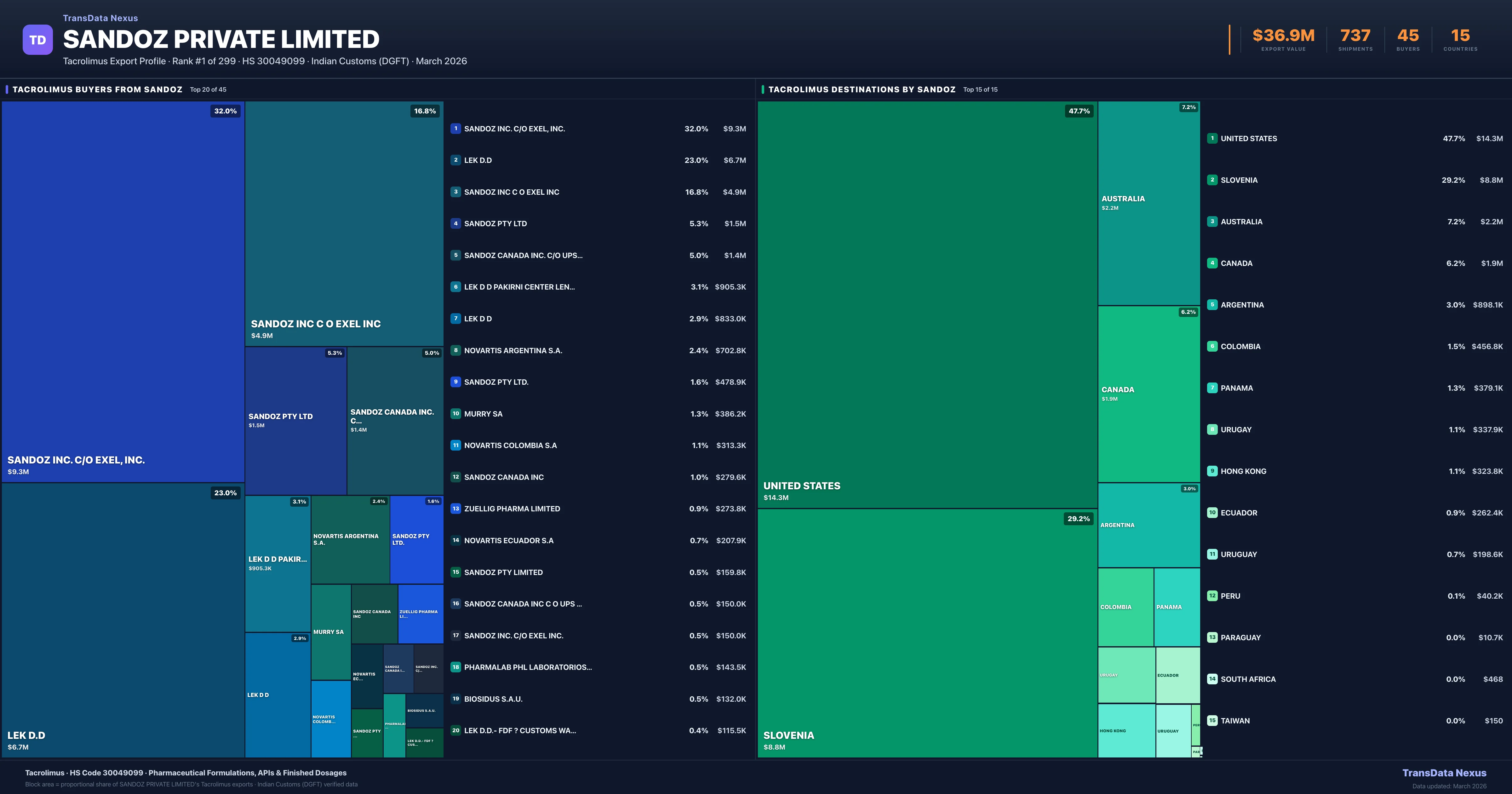 Sandoz Private Limited — Tacrolimus Export Profile: Buyers & Destinations