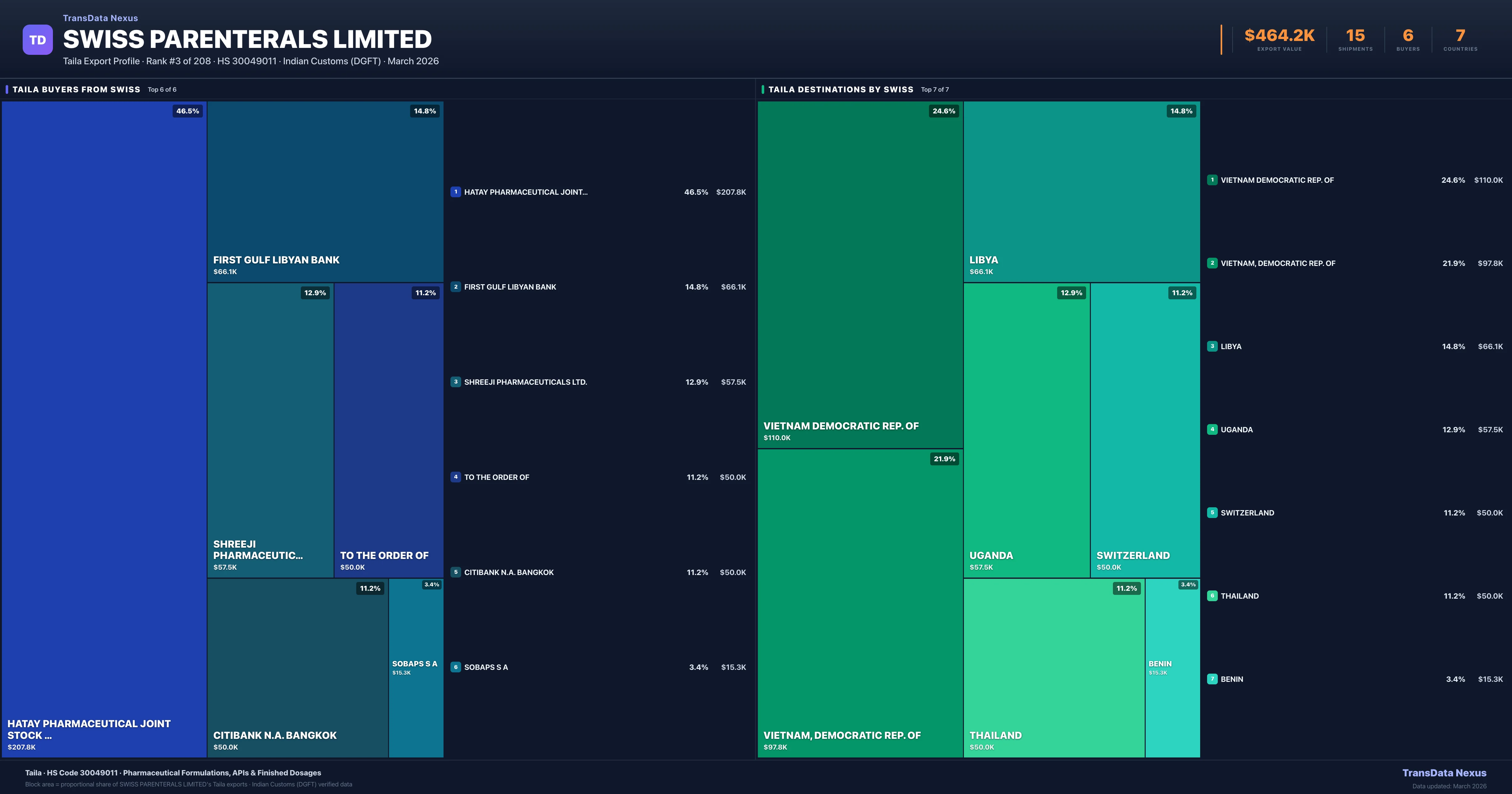Swiss Parenterals Limited — Taila Export Profile: Buyers & Destinations