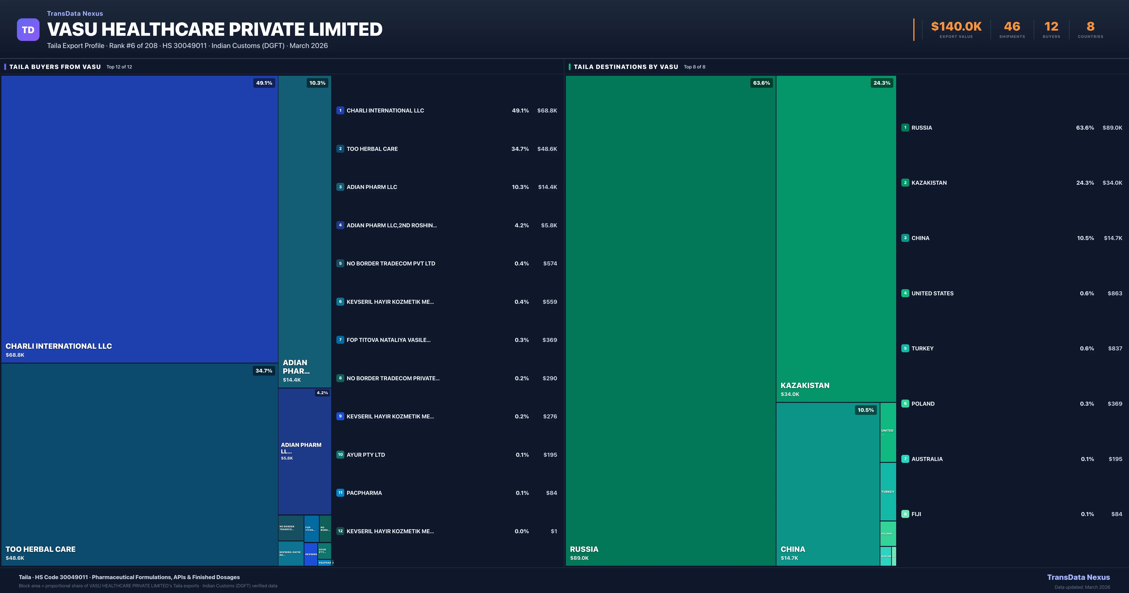 Vasu Healthcare Private Limited β Taila Export Profile: Buyers & Destinations
