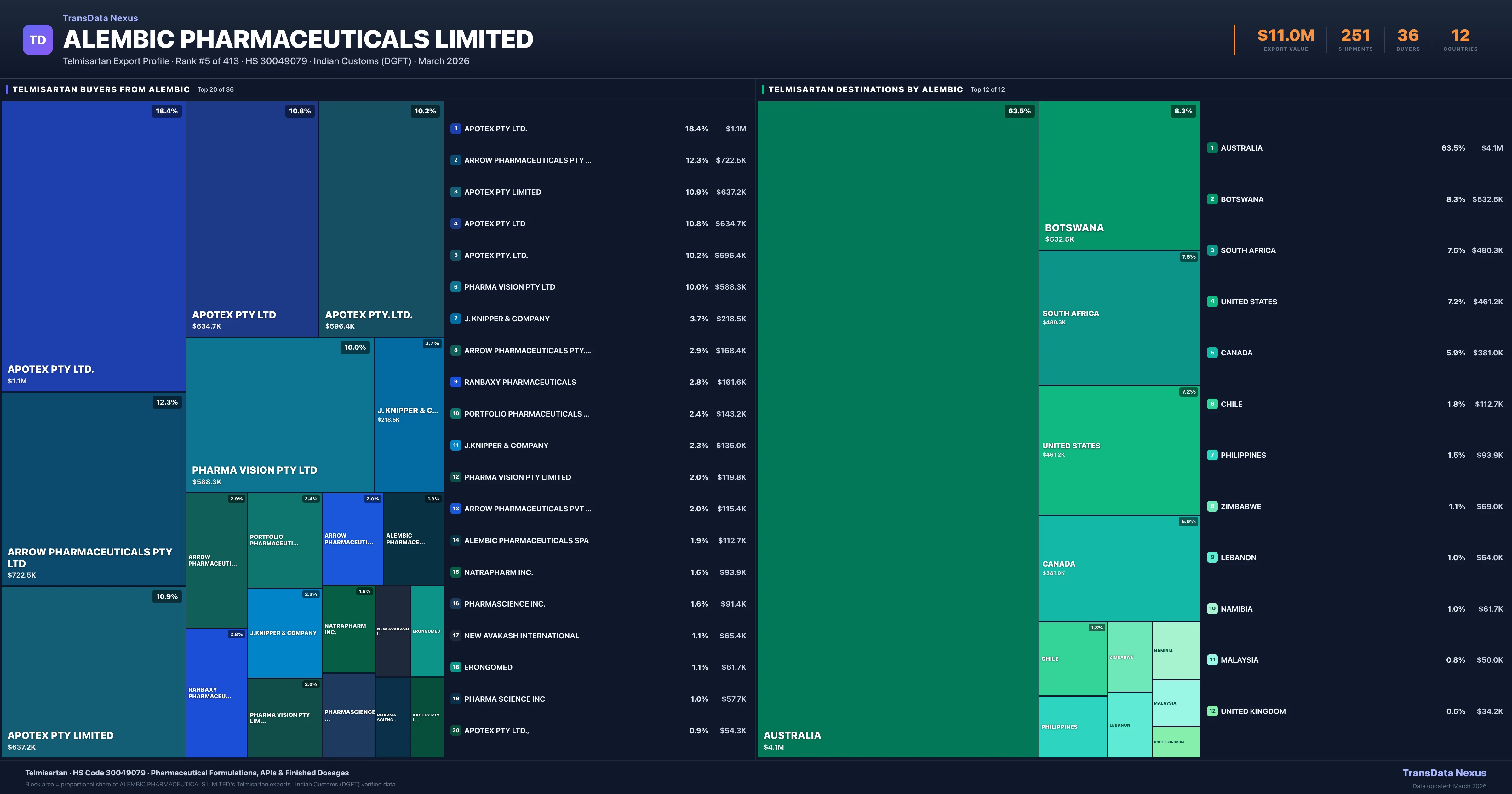 Alembic Pharmaceuticals Limited — Telmisartan Export Profile: Buyers & Destinations