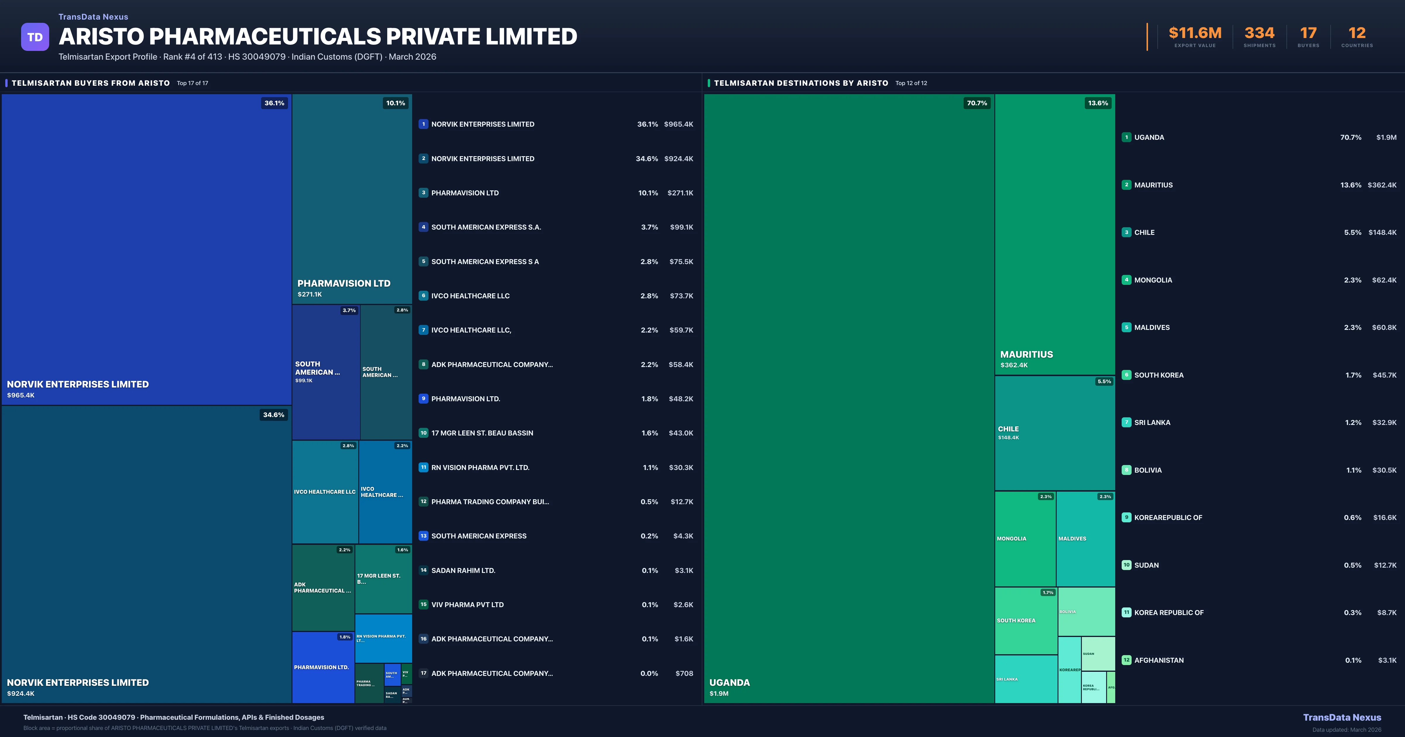 Aristo Pharmaceuticals Private Limited — Telmisartan Export Profile: Buyers & Destinations