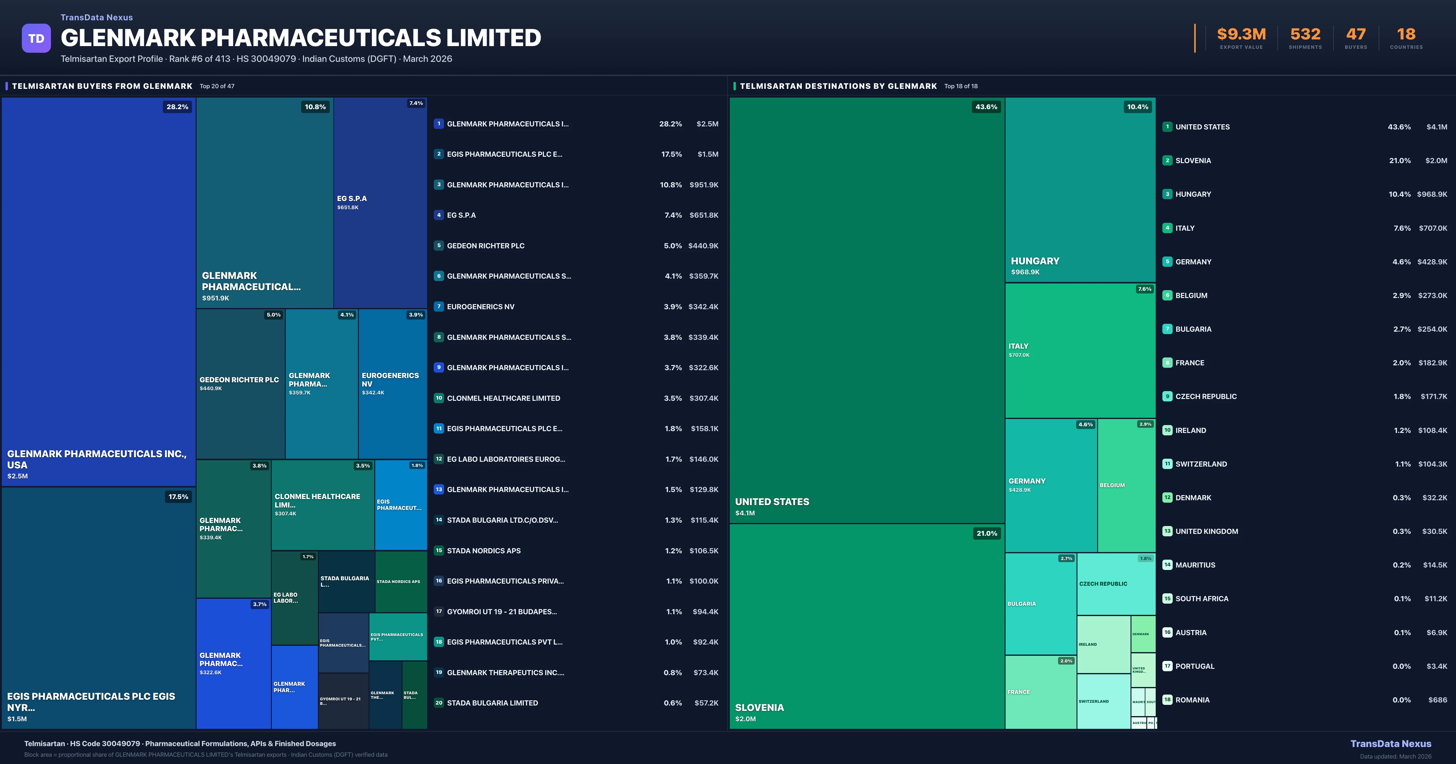 Glenmark Pharmaceuticals Limited — Telmisartan Export Profile: Buyers & Destinations