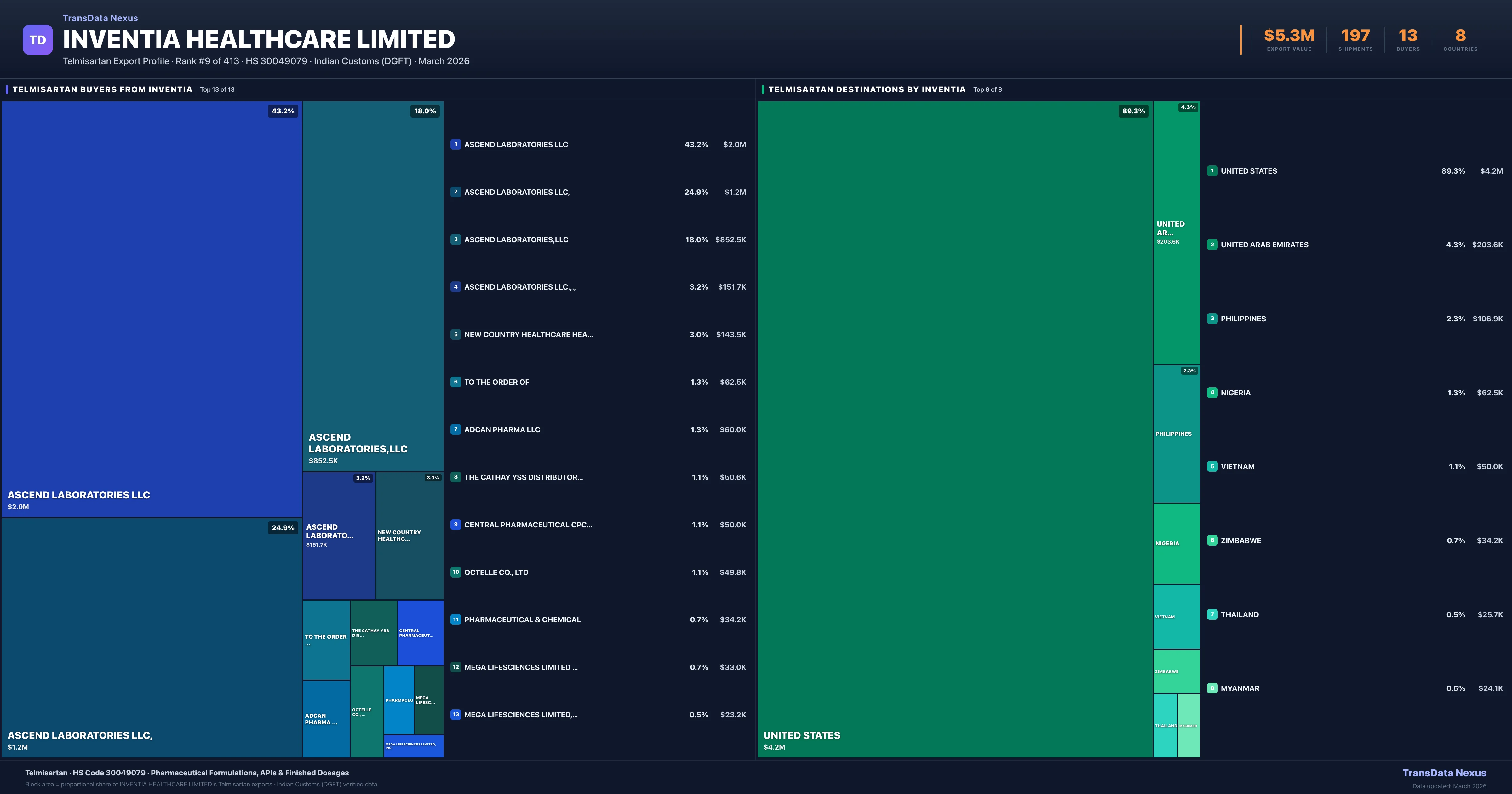 Inventia Healthcare Limited — Telmisartan Export Profile: Buyers & Destinations