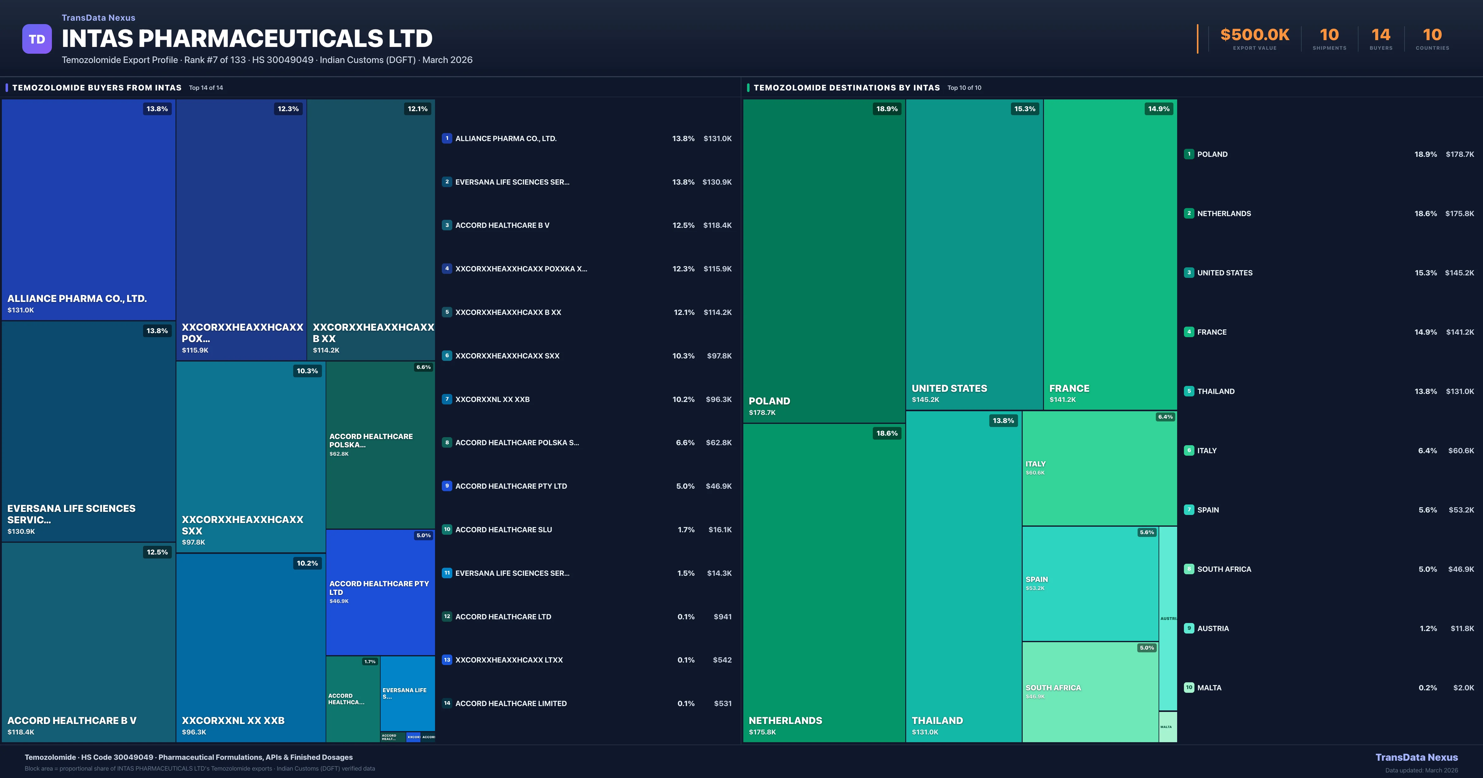 Intas Pharmaceuticals Ltd β Temozolomide Export Profile: Buyers & Destinations
