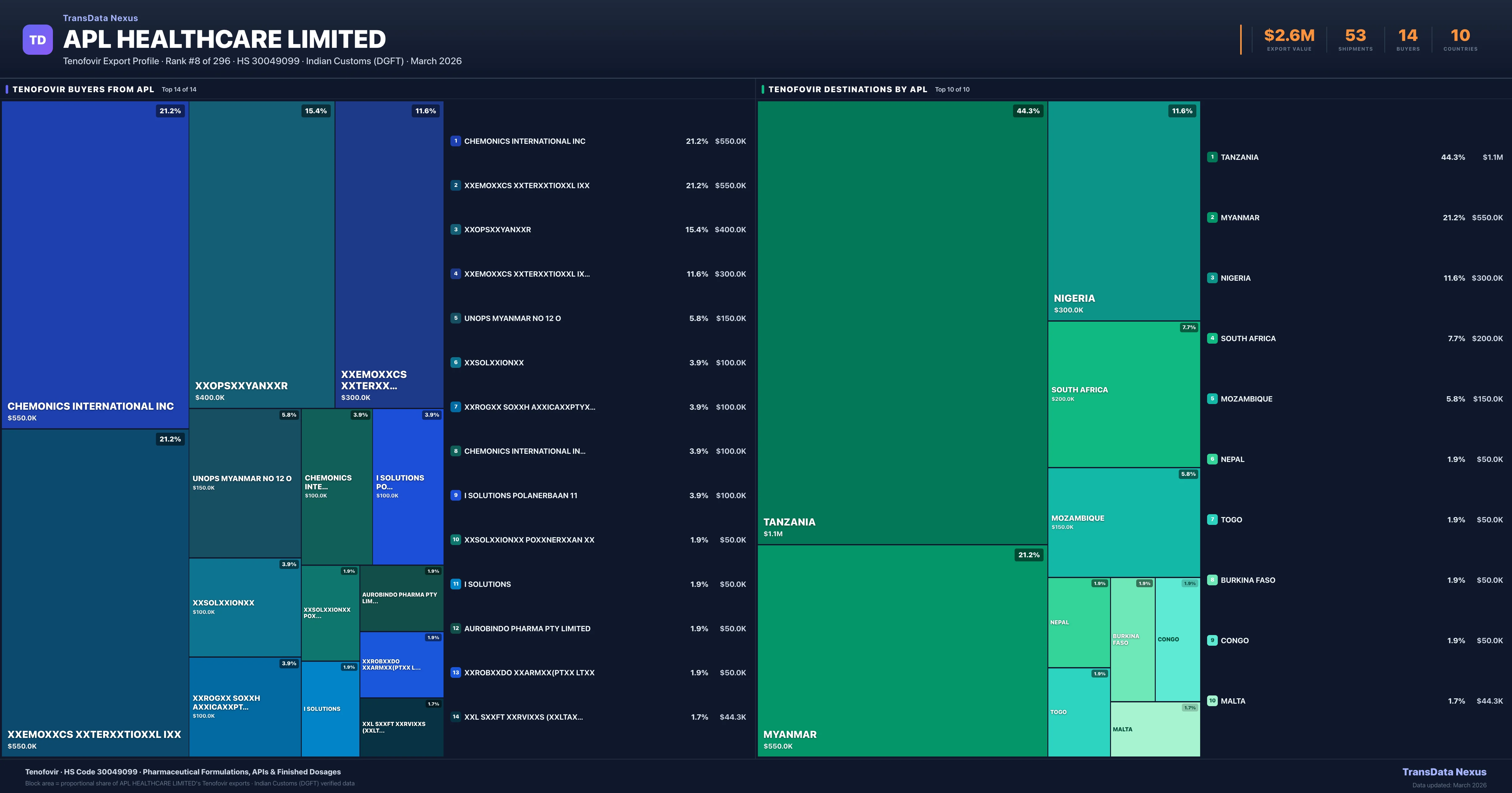 APL Healthcare Limited — Tenofovir Export Profile: Buyers & Destinations
